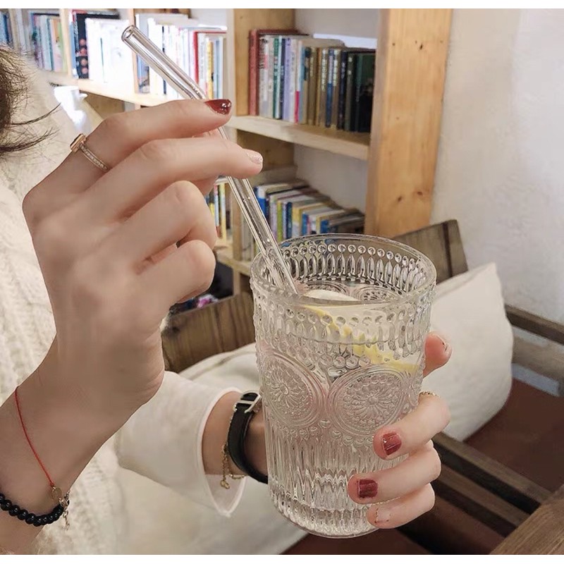 Vintage Retro Matcha Patterned Drinking Glass/ Gelas Kopi/ Gelas Kaca/Gelas Whiskey/Aesthetic Glass Pattern