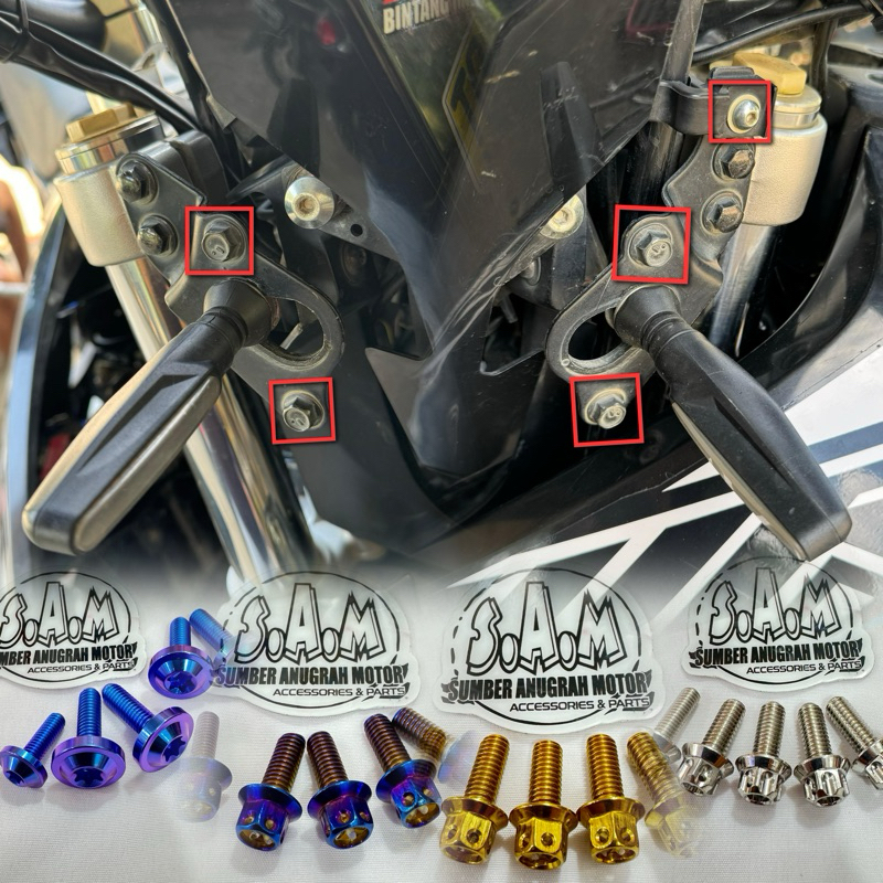 BAUT WR WR155 BAGIAN KUPING LAMPU SEIN SEN DEPAN + KLEMAN SELANG REM ATAS PROBOLT & TITANIUM