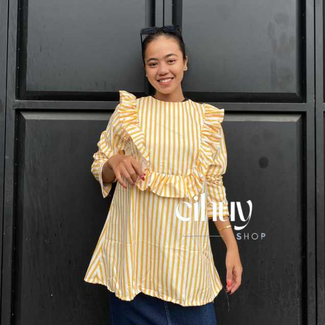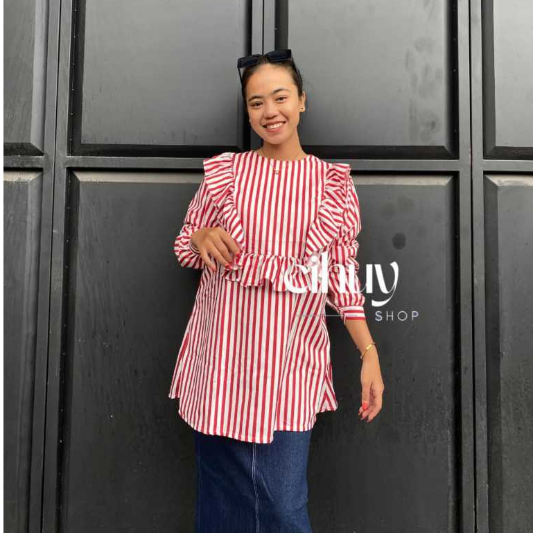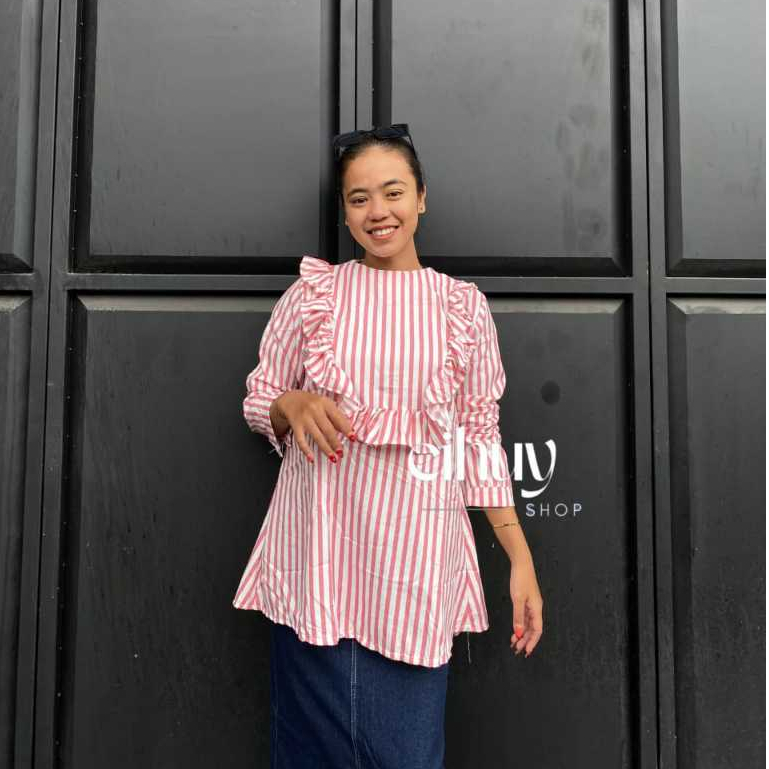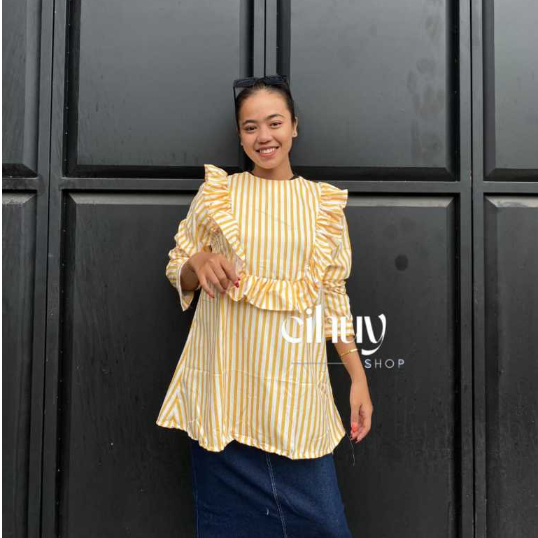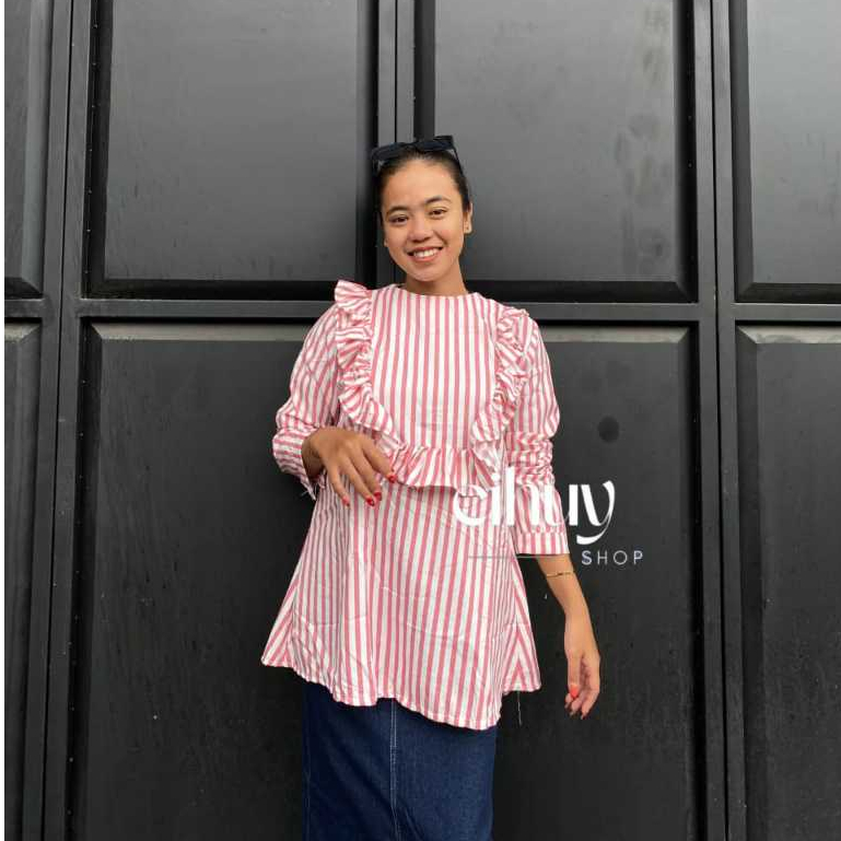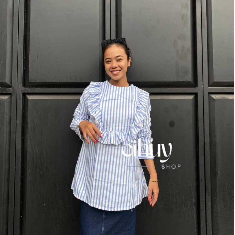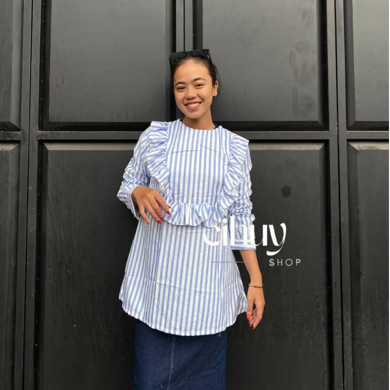 CHY - Nesya Blouse Ruffle Salur Jumbo Blouse Ruffle Cotton Bigsize Wanita