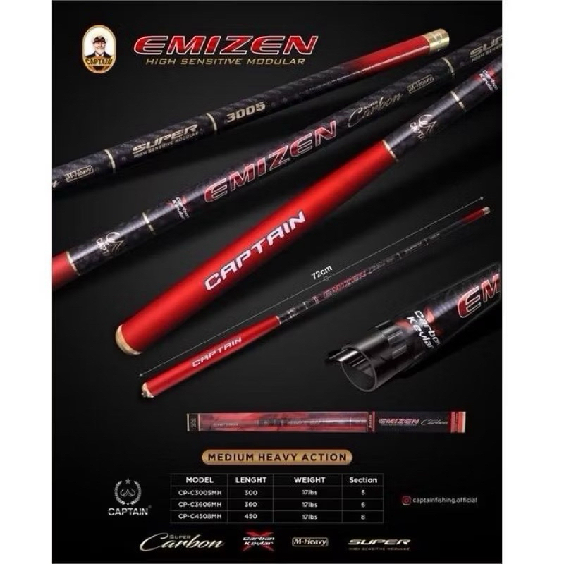 Tegek Kaku Super High Carbon Captain Emizen Kuat Spesial Ikan Babon