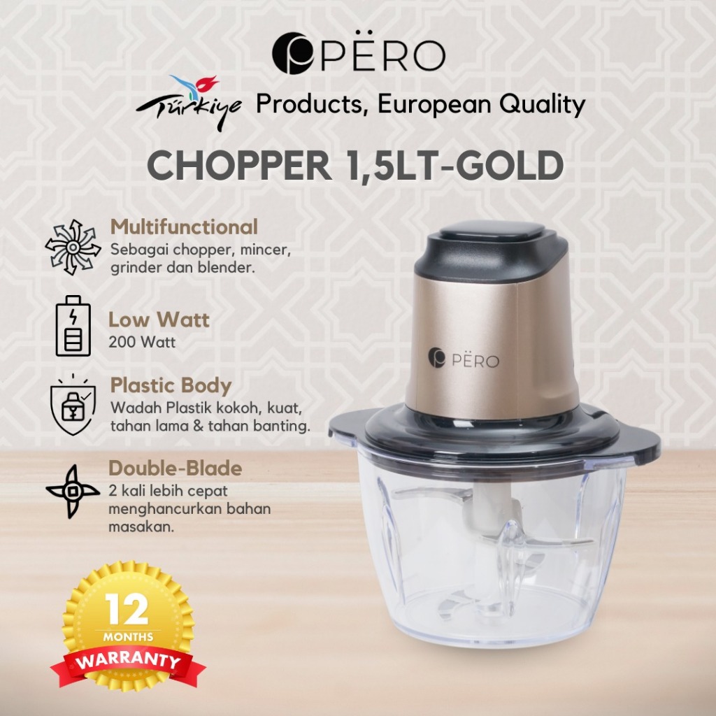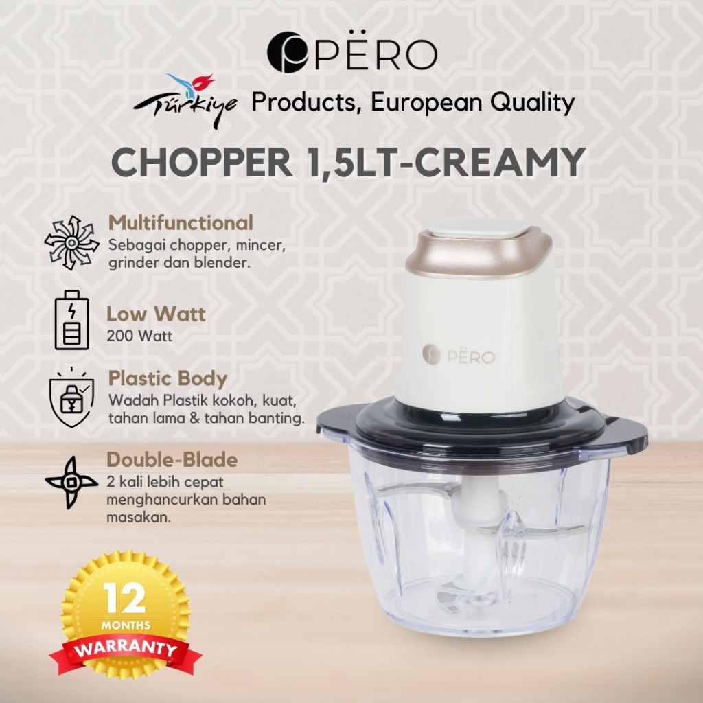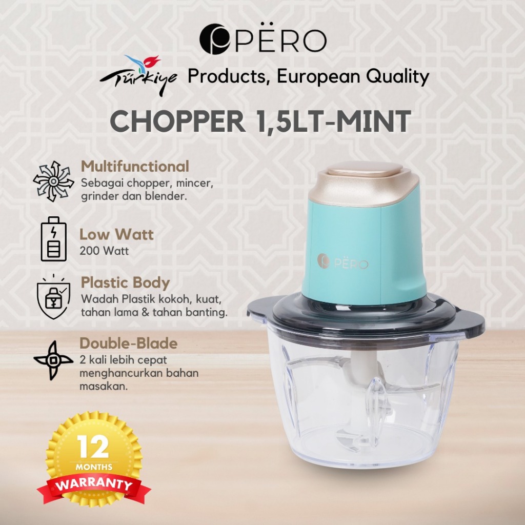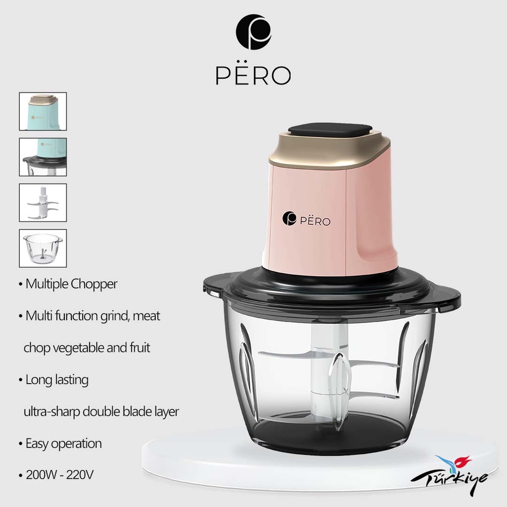 [Restock] Pero Food Processor Chopper 1.5L 200W / Blender Penggiling Daging Sayur Buah Watt Rendah