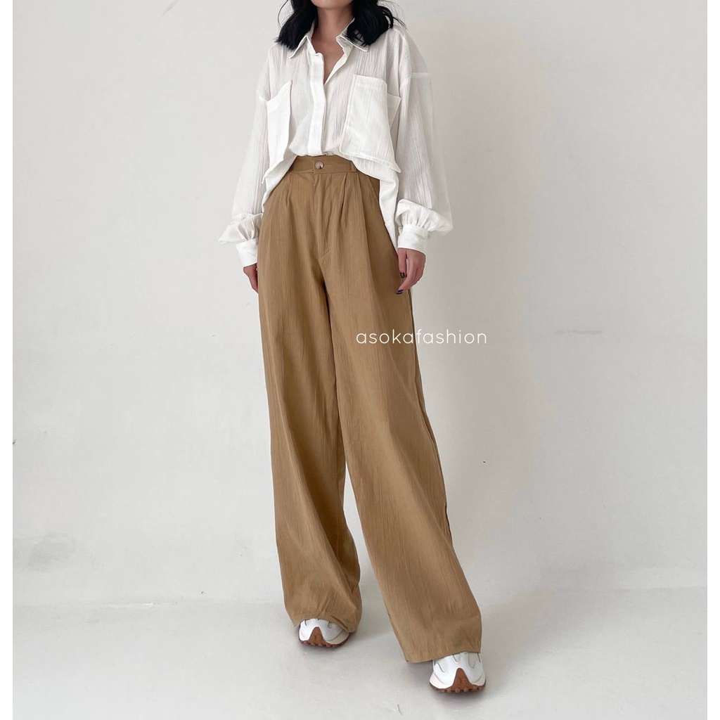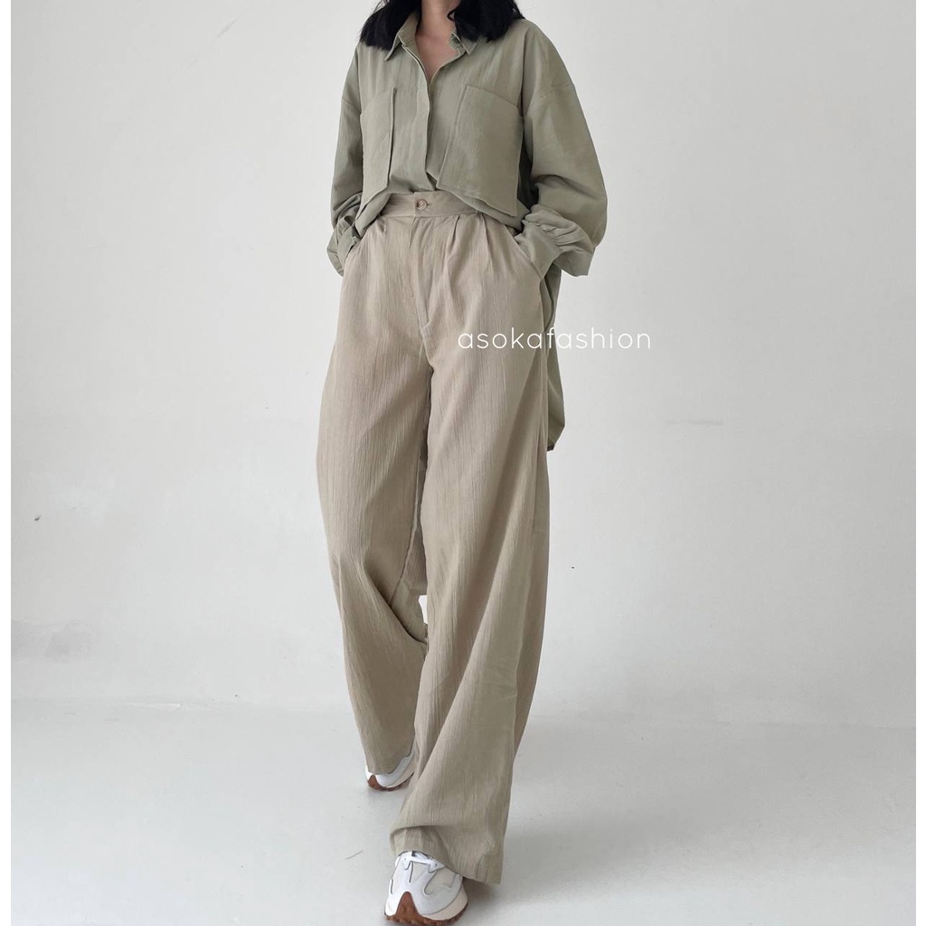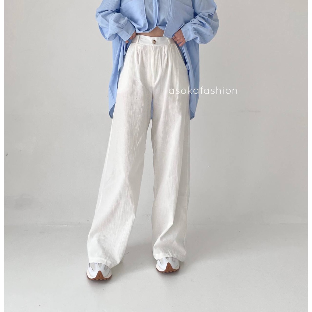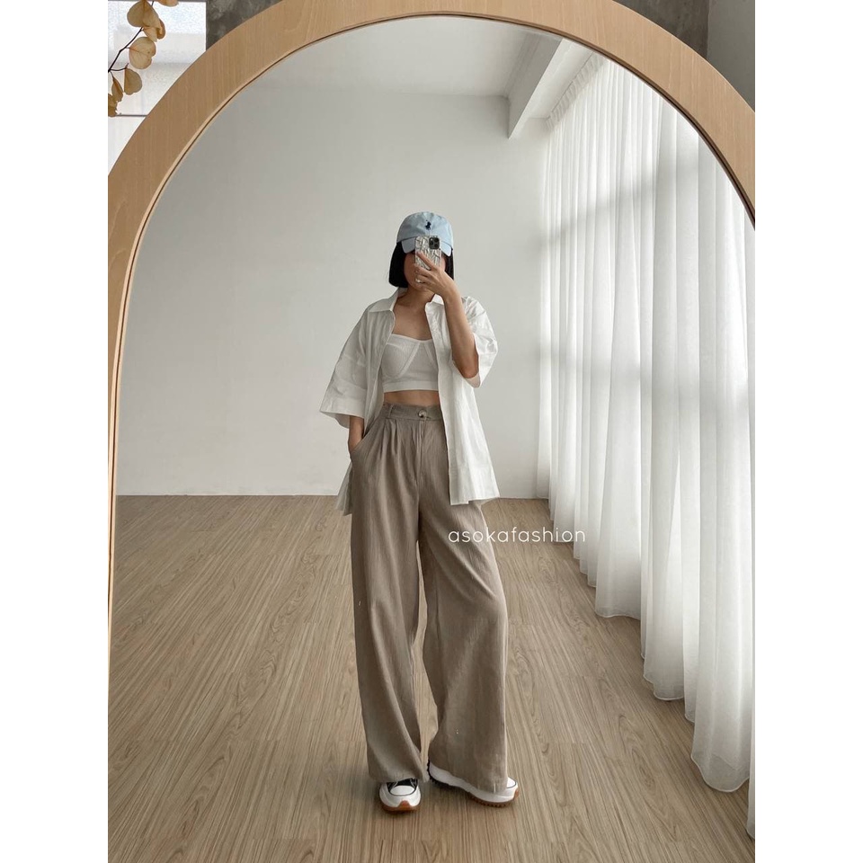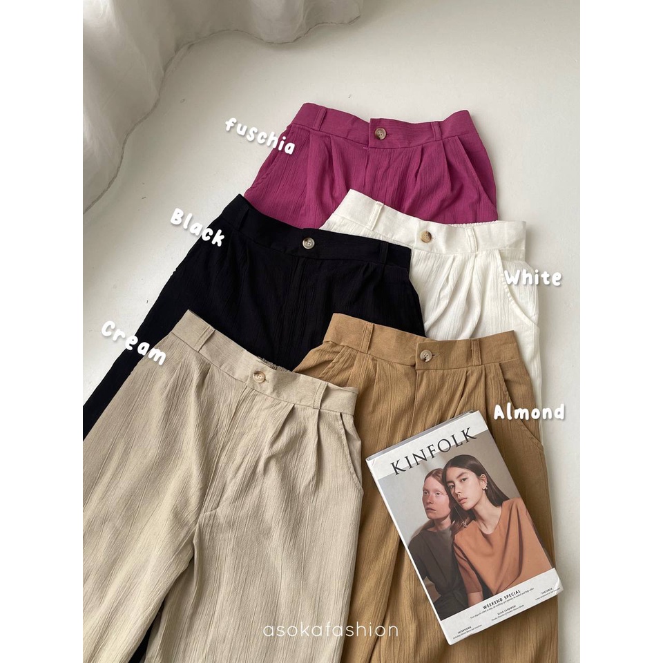 ASOKA Beatrix Pants 1103 - Celana Kulot Linen Crinckle Highwaist I Celana Basic Wanita I Cullote Highwaist
