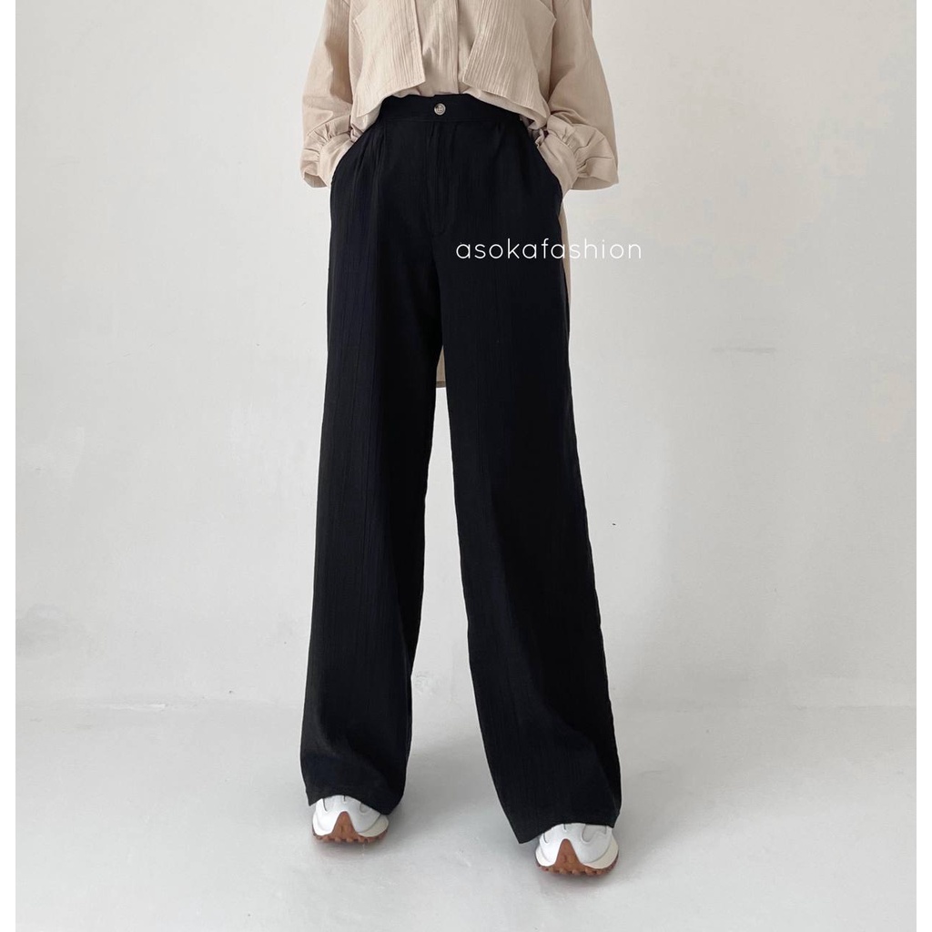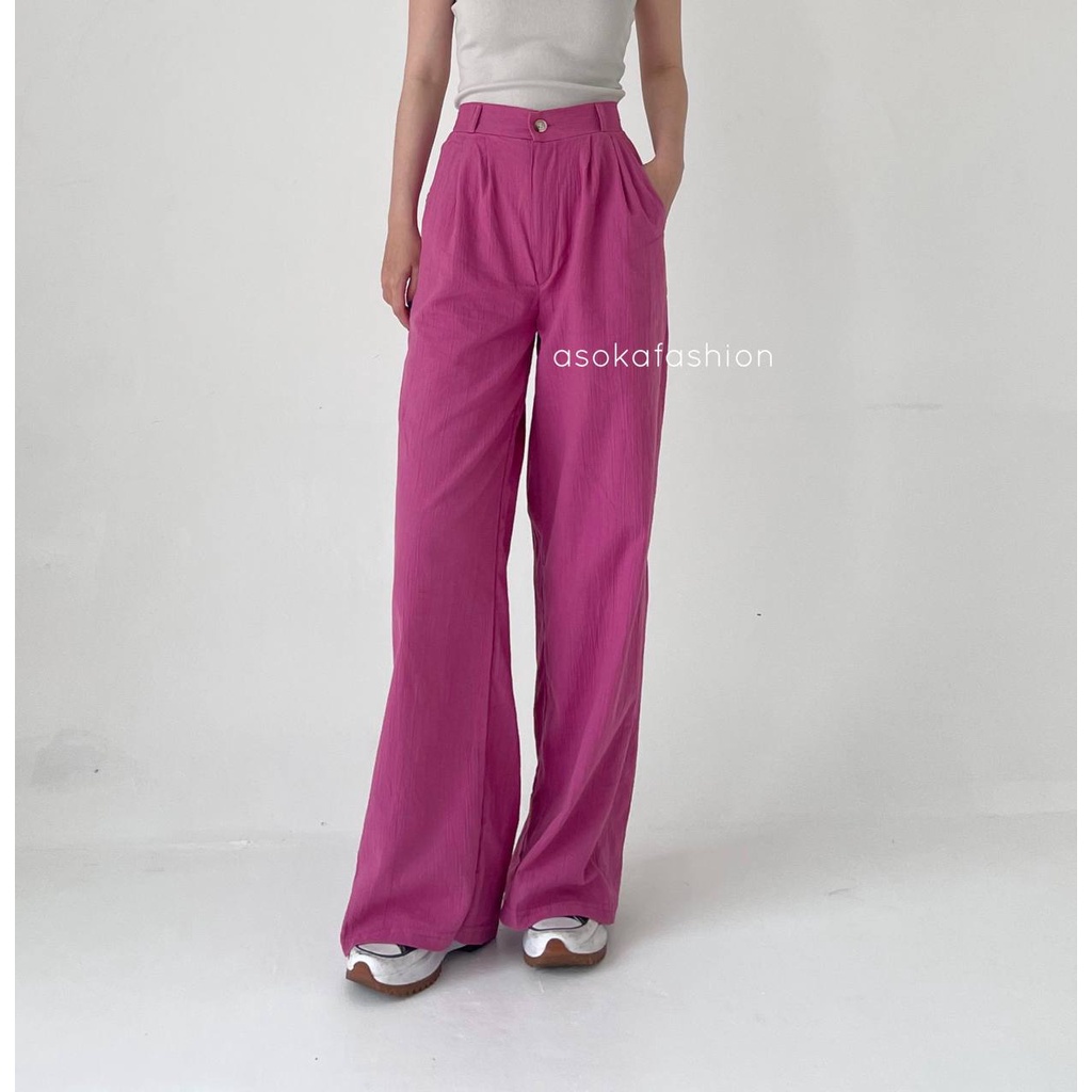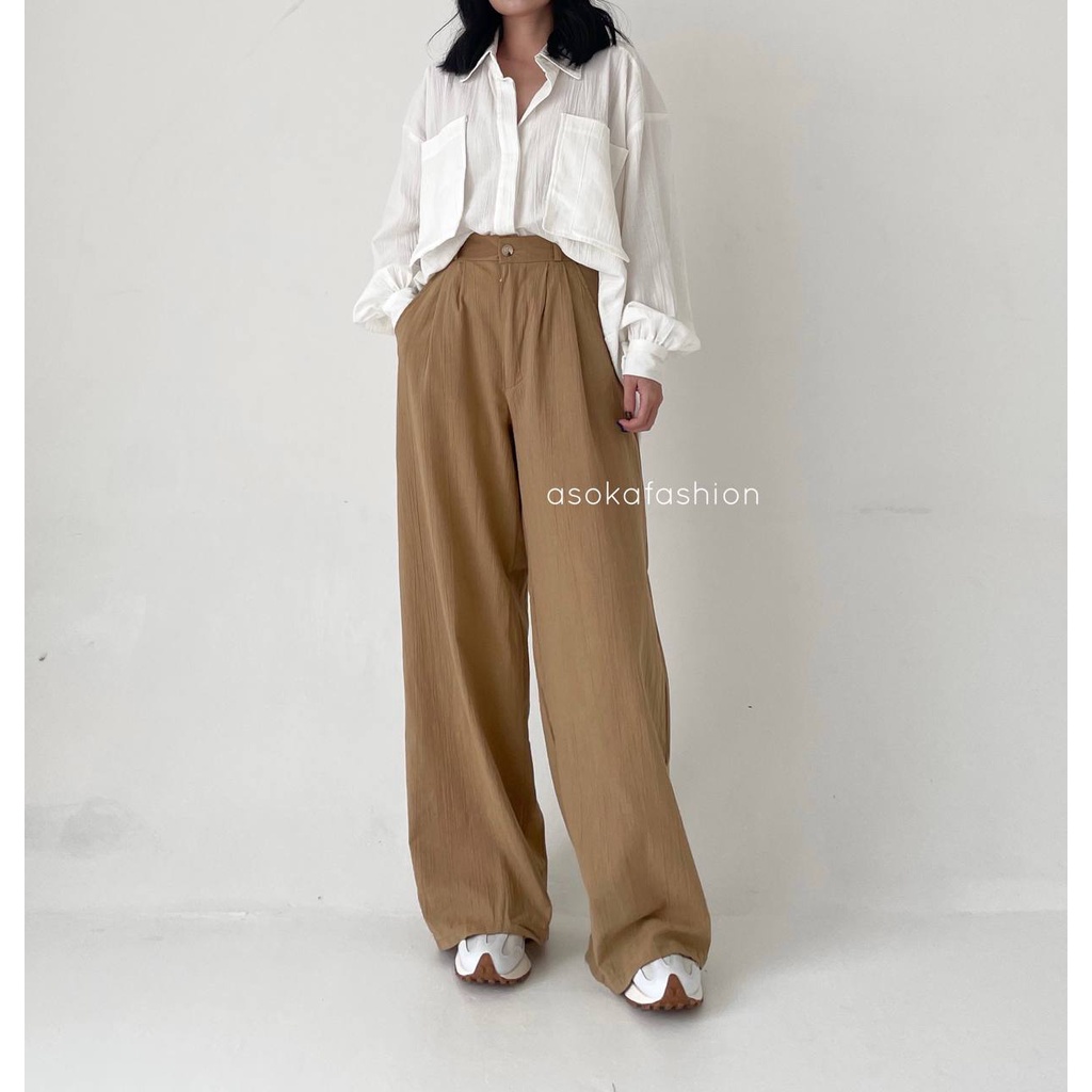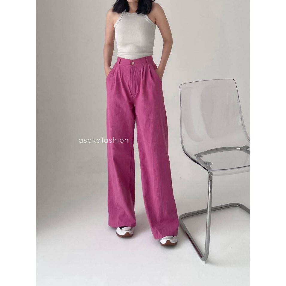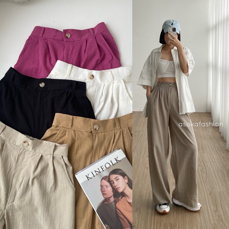 ASOKA Beatrix Pants 1103 - Celana Kulot Linen Crinckle Highwaist I Celana Basic Wanita I Cullote Highwaist
