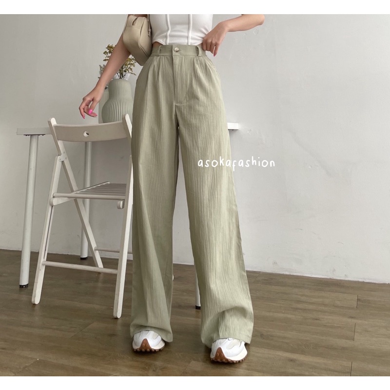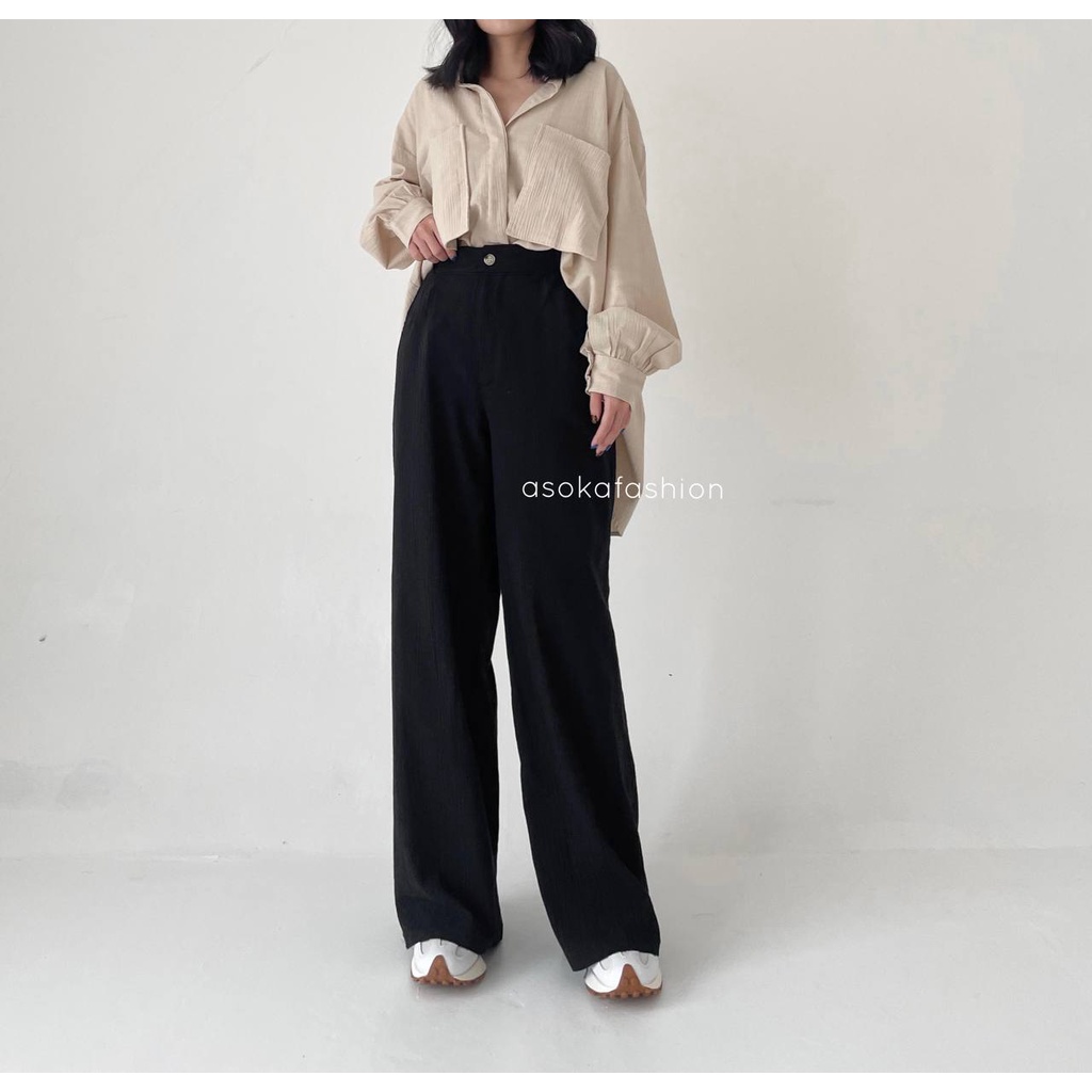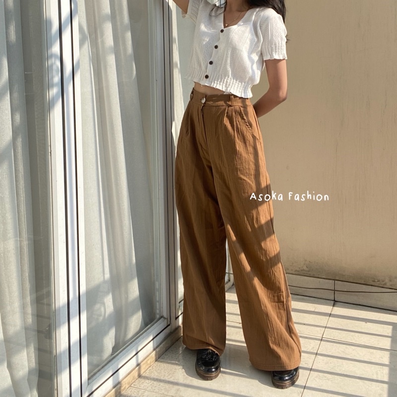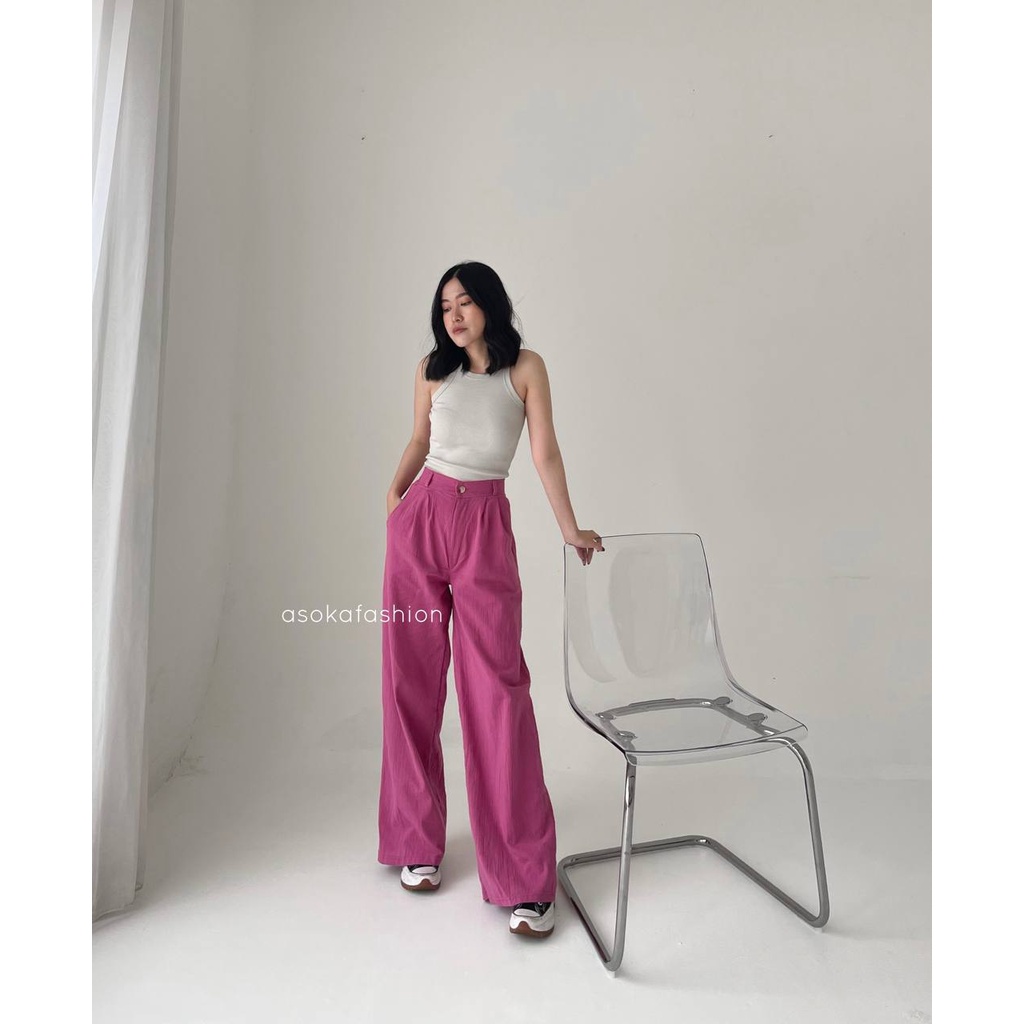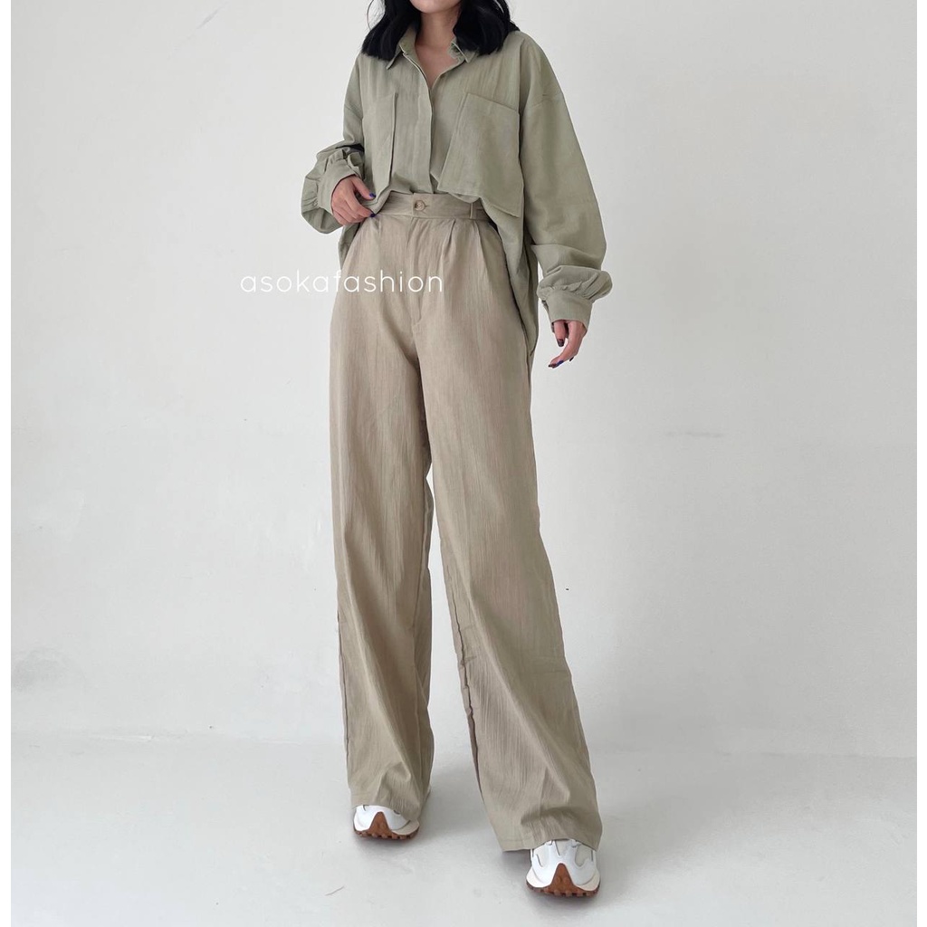 ASOKA Beatrix Pants 1103 - Celana Kulot Linen Crinckle Highwaist I Celana Basic Wanita I Cullote Highwaist