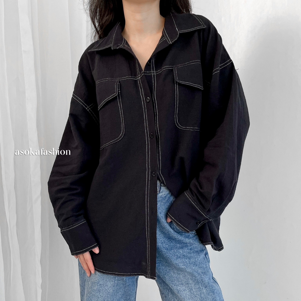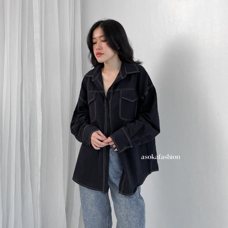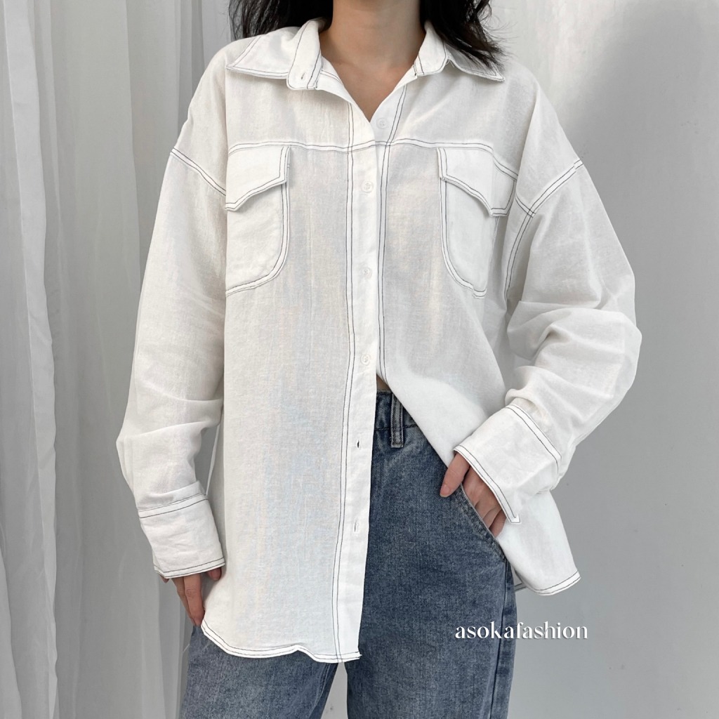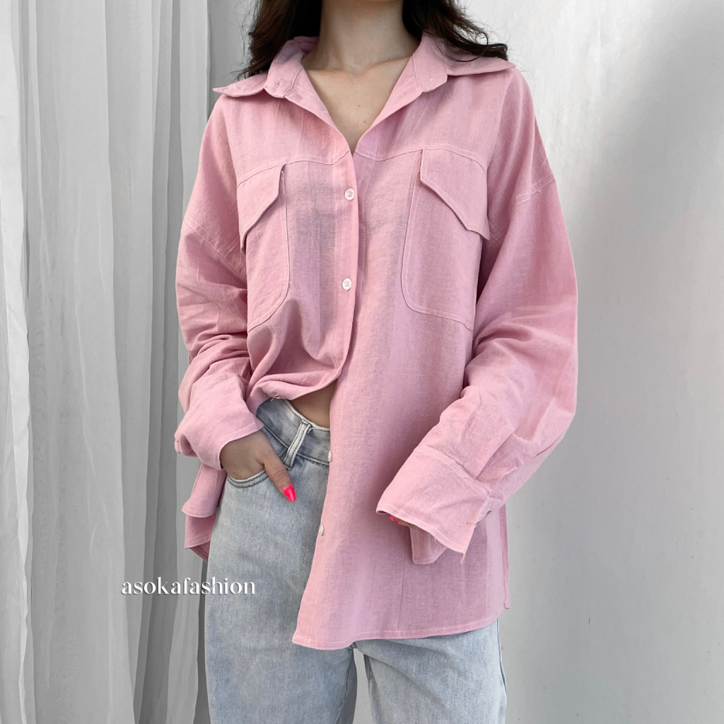 ASOKA Kaylee Shirt 2198 - Atasan Oversize Wanita Kemeja Kantor/Casual - Pocket Shirt Basic Oversize Linen