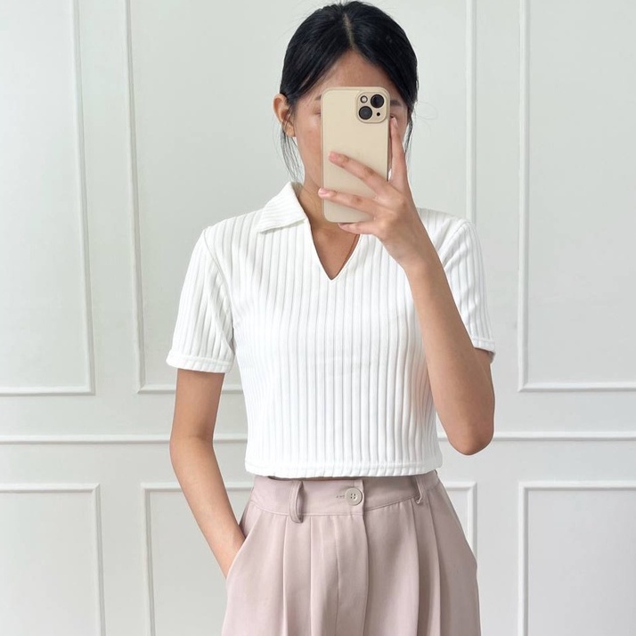 ASOKA Lily Top 260 - Kaos Pendek Wanita Knit Rib - Kaos Polo Crop