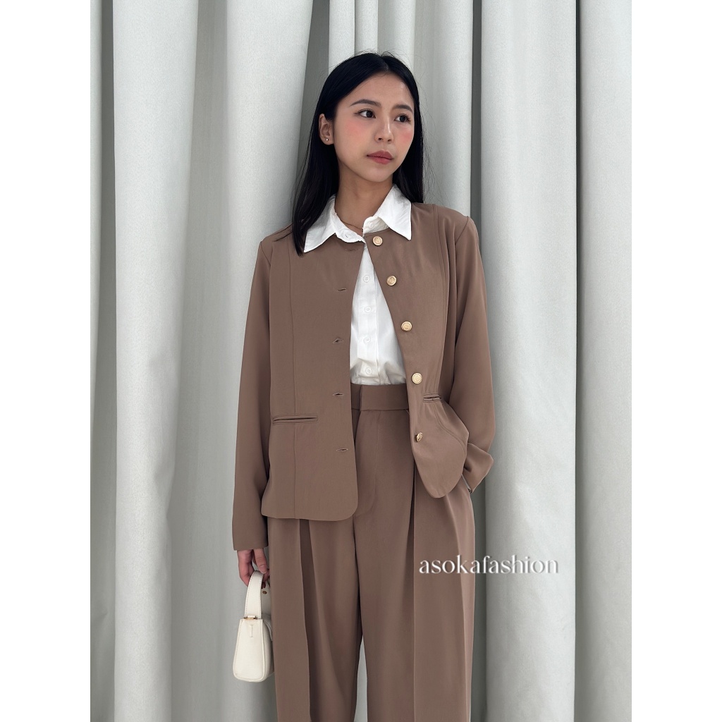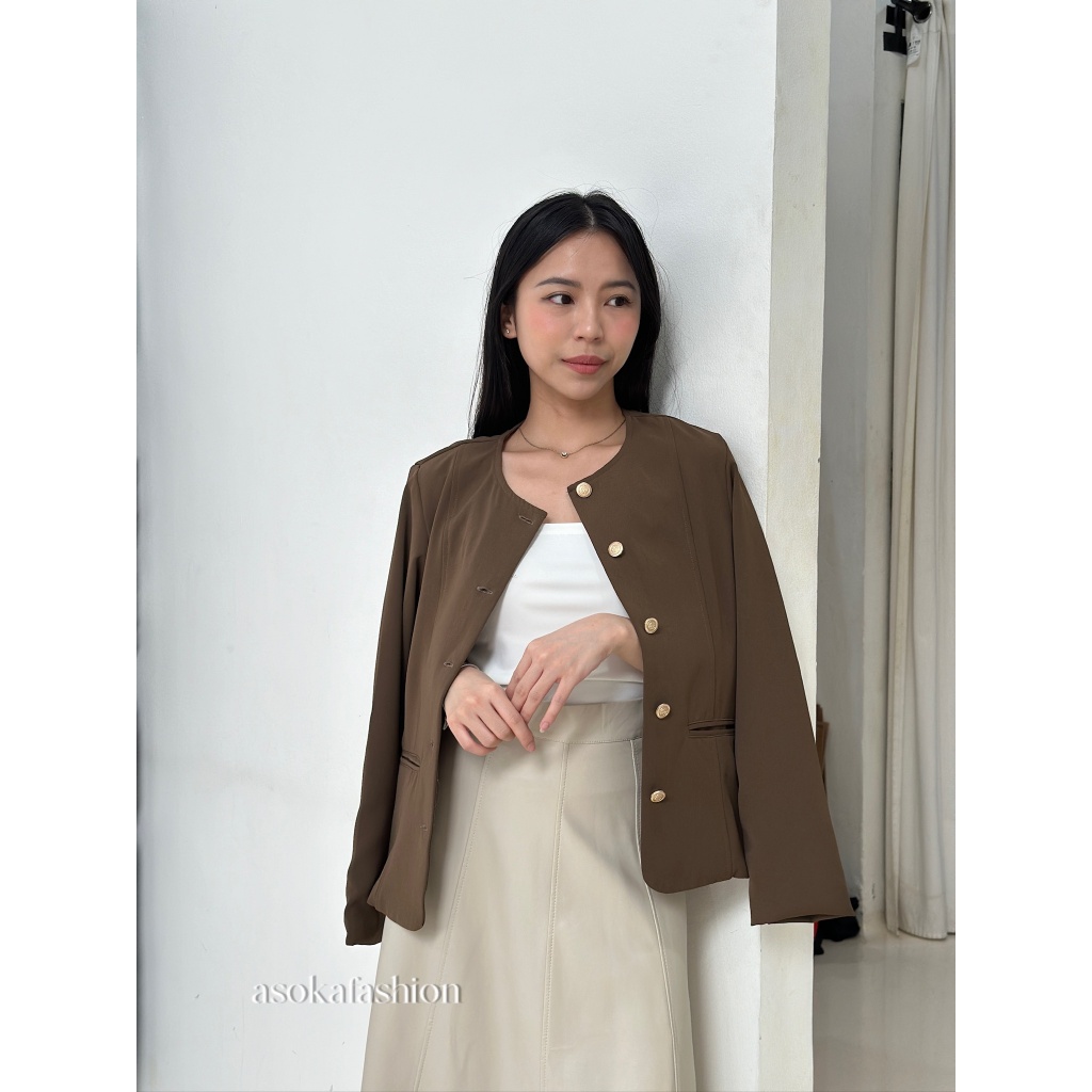 ASOKA Chika Blazer 1360 - Atasan Wanita Outer Lengan Panjang - Korean Blazer Button Vintage Formal Anti Kusut