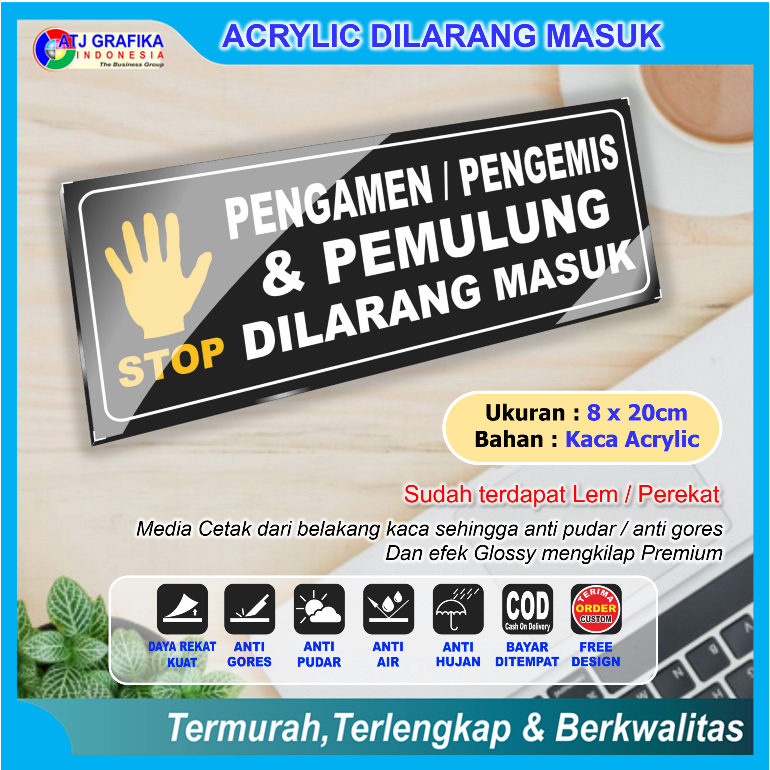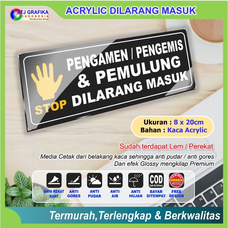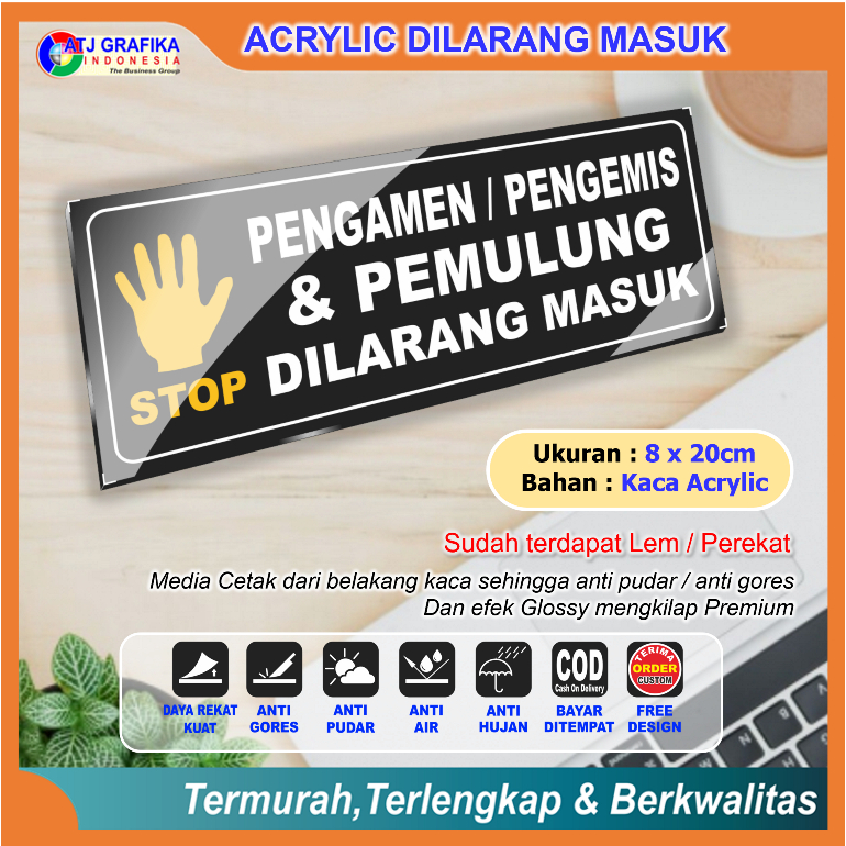 PREMIUM ACRYLIC pengamen pengemis pemulung dilarang masuk akrilik sign keamanan lingkungan