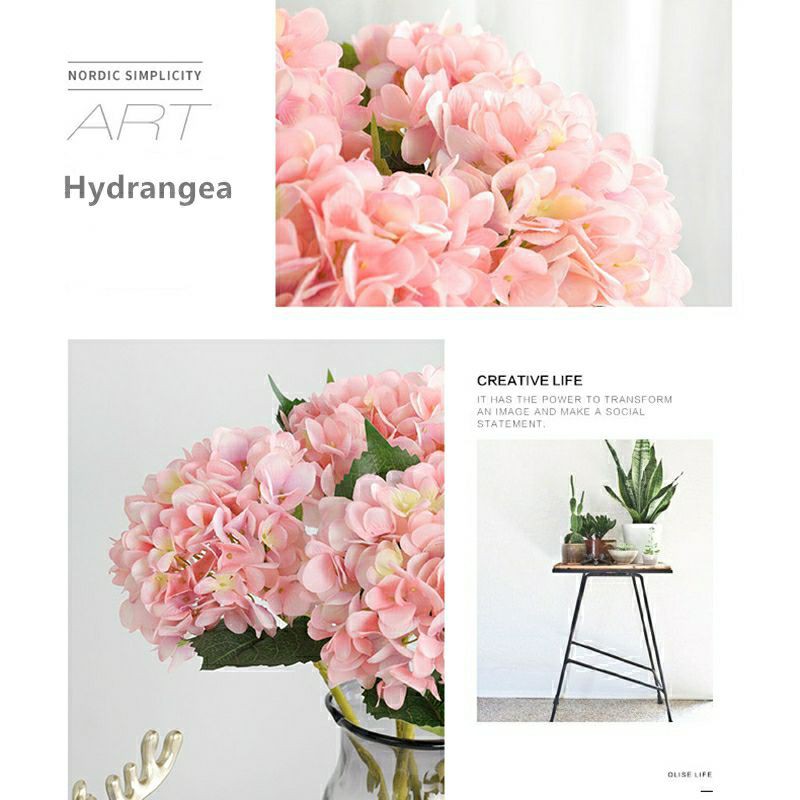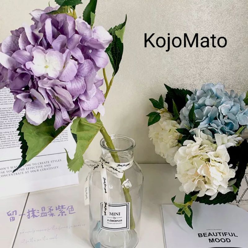B018 Bunga Hortensia Jumbo 5 cabang Tangkai Besar Artificial hias plastik Hydrangea dekorasi rumah kamar