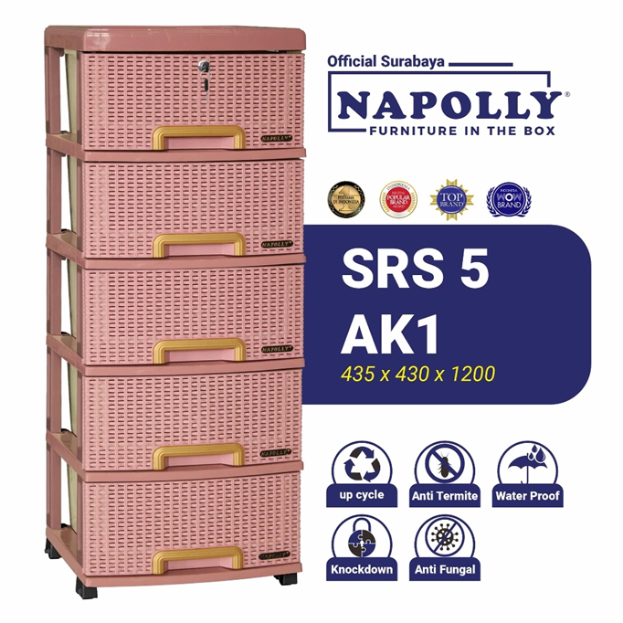 Lemari Plastik LACI Napolly Container Rotan 5 Susun DAN 4 Susun srs 4 , srs 5 WARNA RANDOM