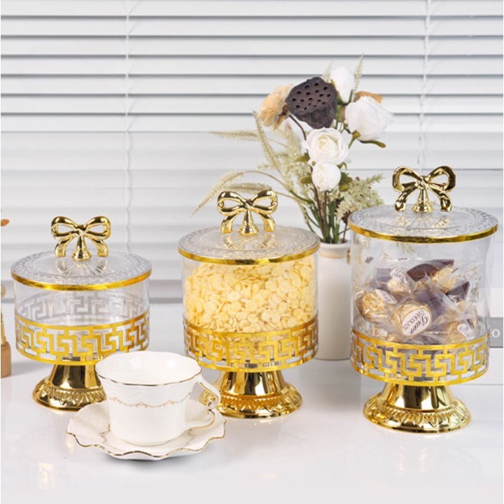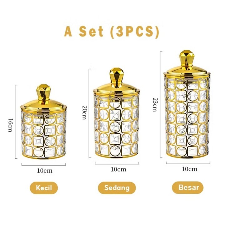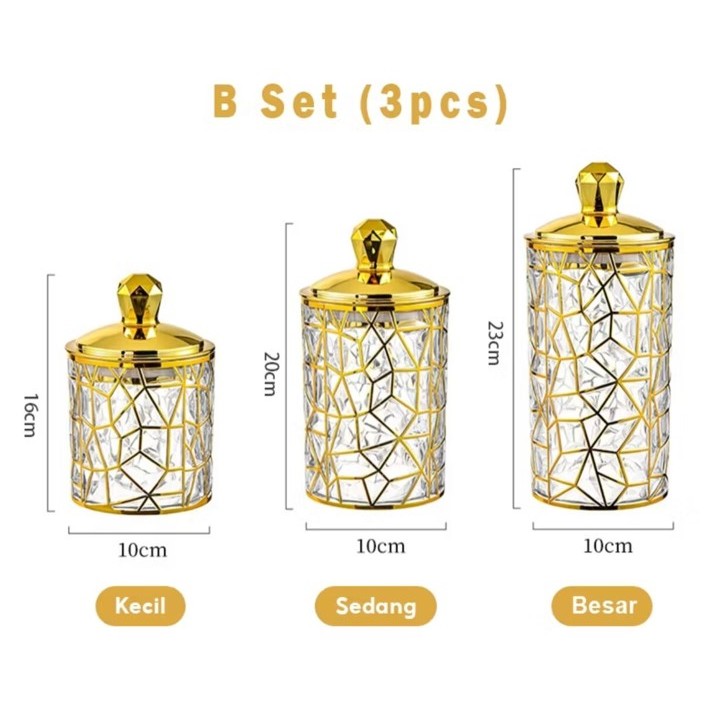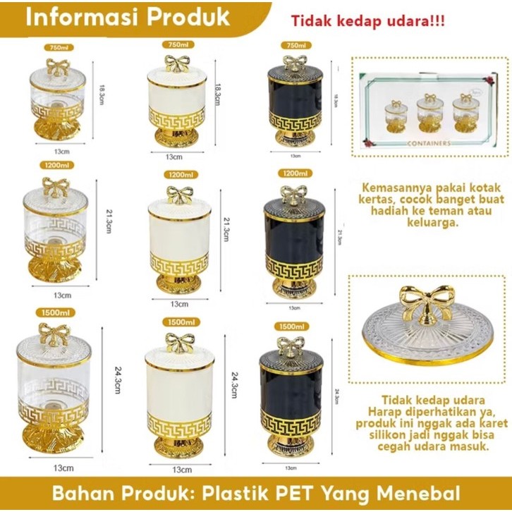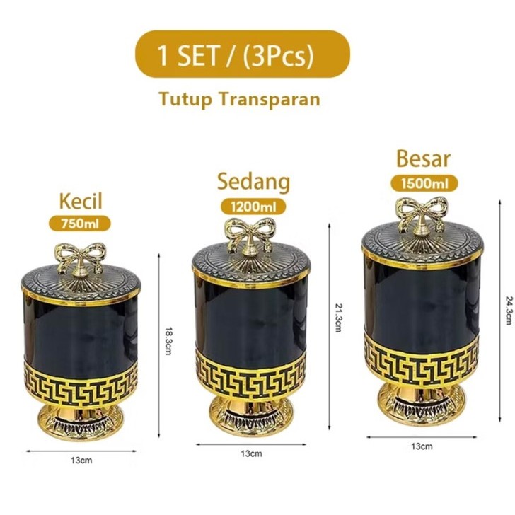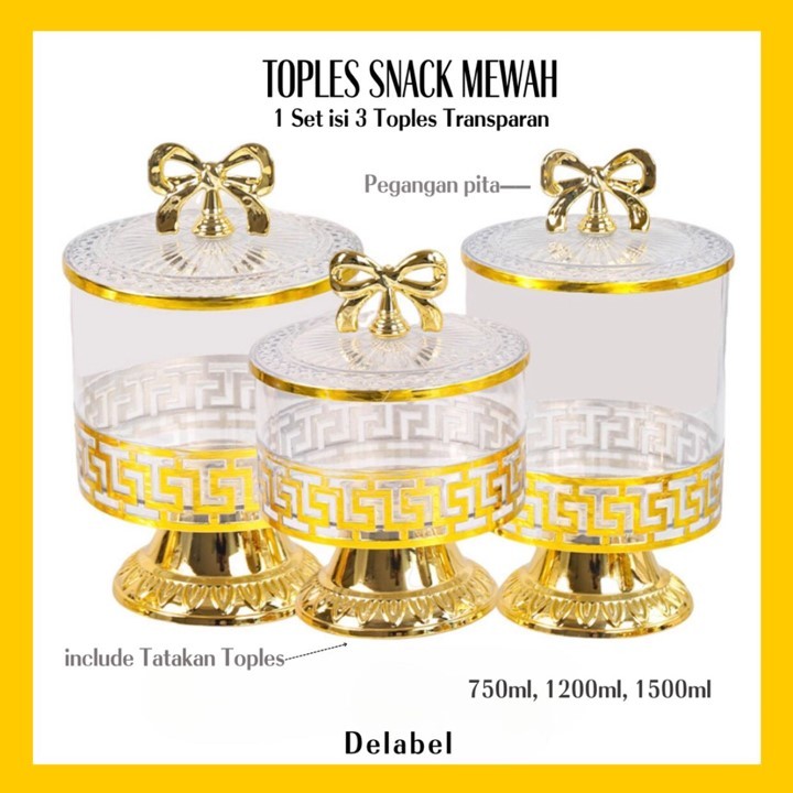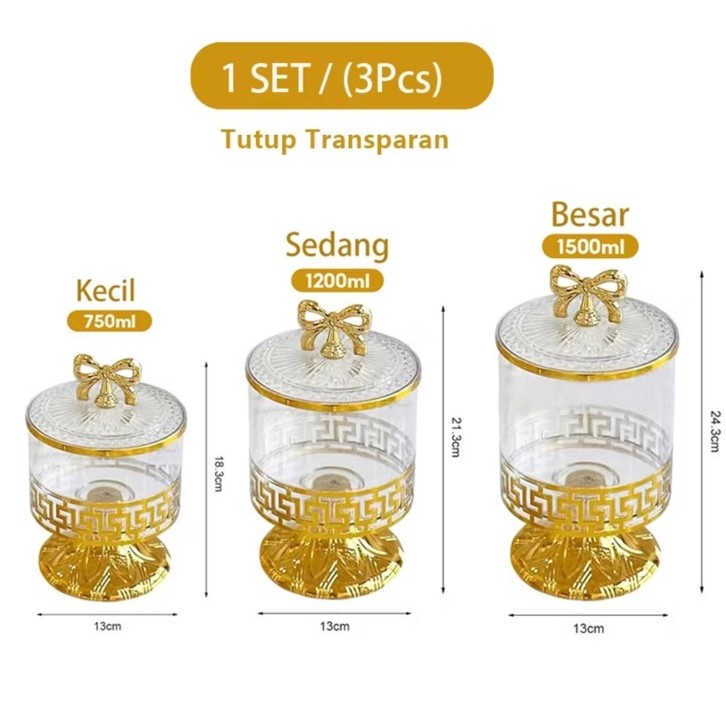 Set Toples Lebaran Pita Emas Estetik Mewah / Toples Gold Tempat Penyimpanan Makanan Snack Kue Kering