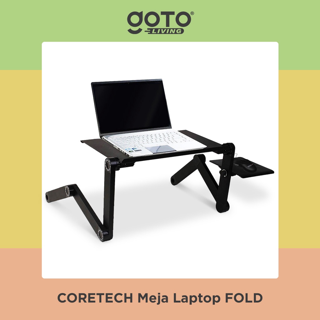 Coretech Fold Meja Laptop Lipat Aluminium With Cooler Big Fan Mousepad