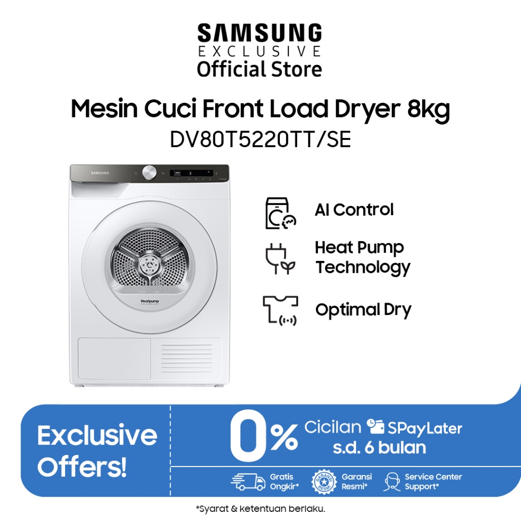 Samsung Front Load Dryer 8kg | AI Control | Pengering Pakaian AI | Hemat Energi | DV80T5220TT/SE