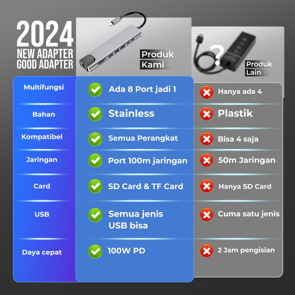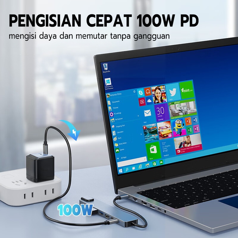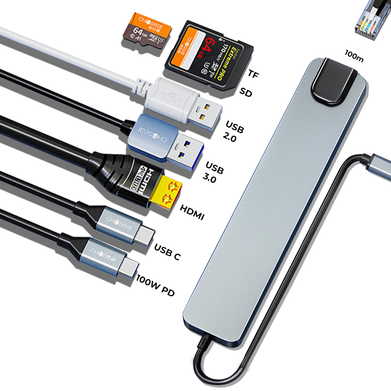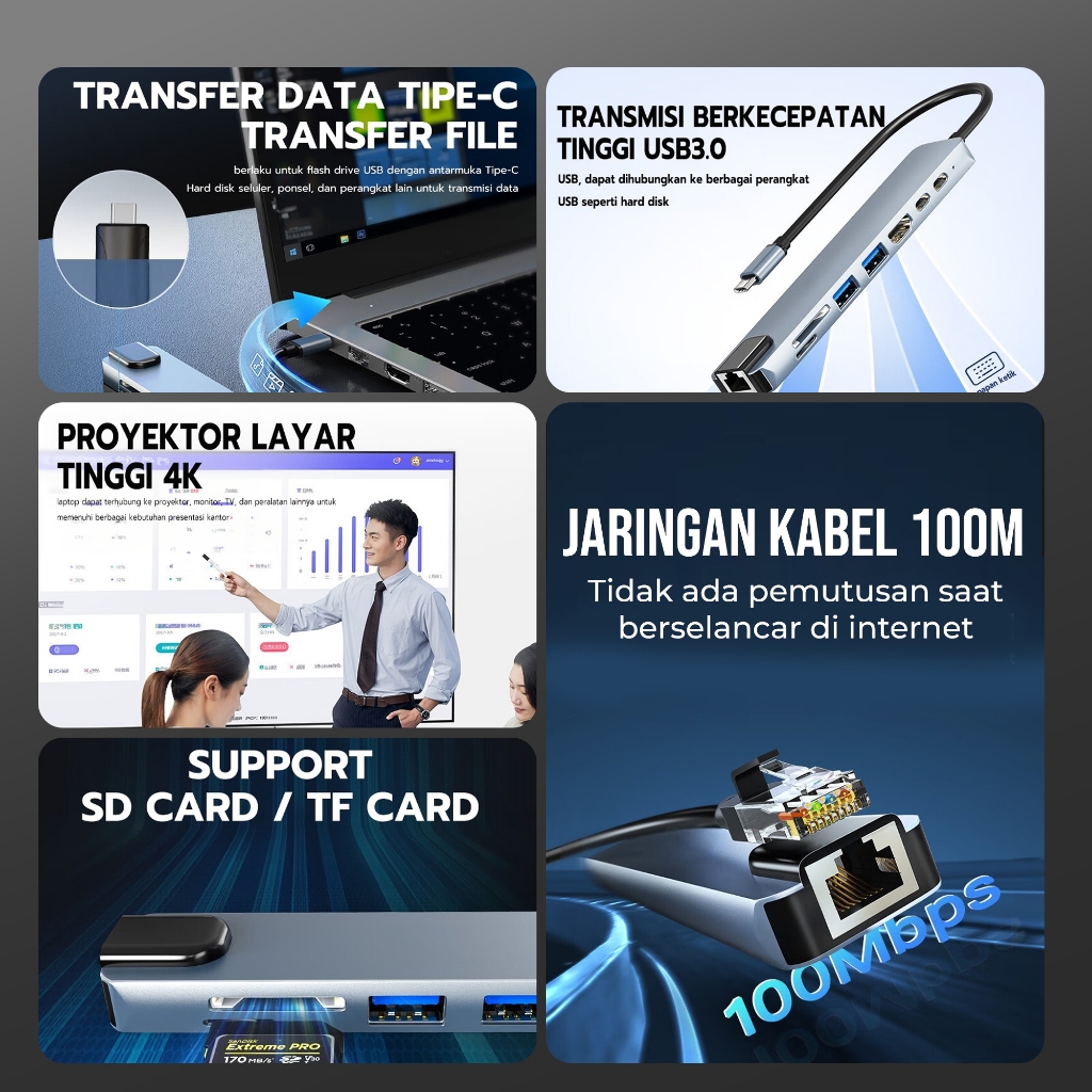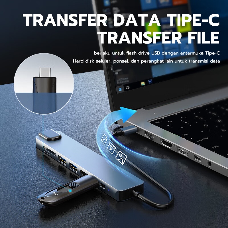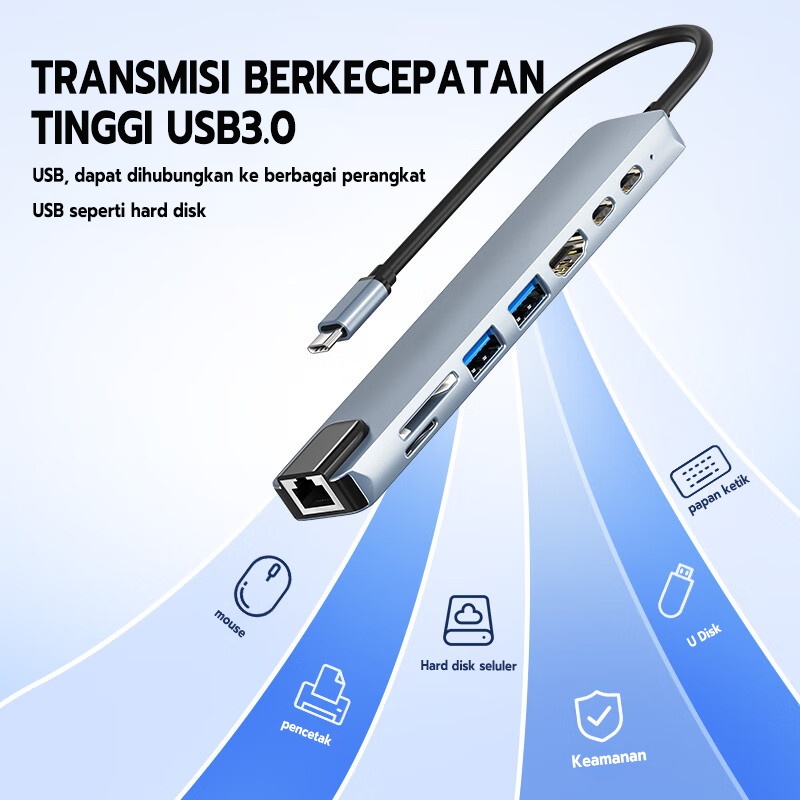 Jovitech 8in1 Adapter Konektor Multifungsi HDMI 1.4 USB 100W PD TYPE C SD Card TF Card 4K Kabel 100M Fungsi OTG Support Mobile Phone Laptop Tablet Komputer - DS01
