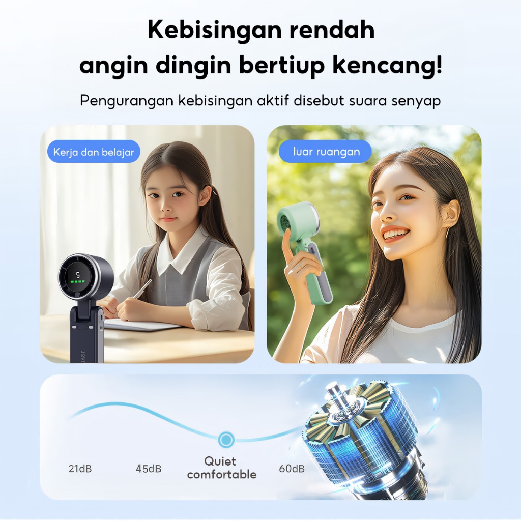 Jocitech FN53 Mini Fan Portable High-Speed 5 Gear Foldable LED Digital Display Turbo Fan Kipas Ac mini portable Kipas Angin Portable Dapat Dilipat