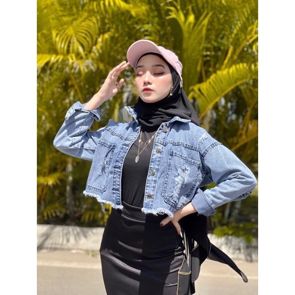 OOTD - Jaket Jeans Ripped Crop / Jaket Jeans Ripped Oversize