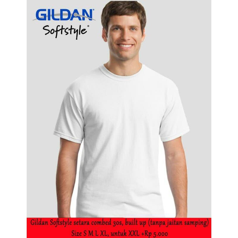 Paling Baru Kaos Gildan Softstyle Polos Tanpa Jahitan Samping Putih Combed 30S - Putih, S Terhot