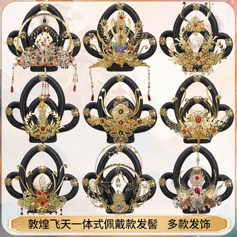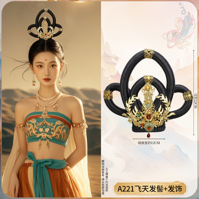 Wig Hanfu Baru Gaya Kuno Aksesori Rambut Updo Sanggul Terbang
