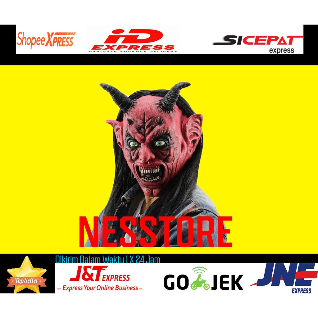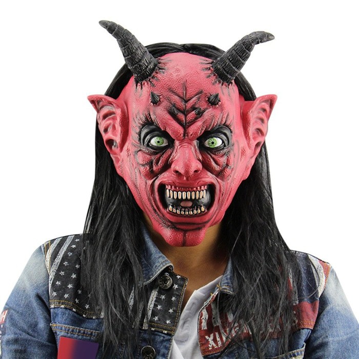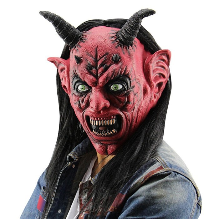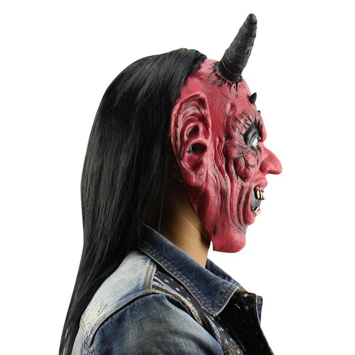 Topeng Raja Setan Iblis Satan Tanduk Dengan Wig Latex Halloween Mask