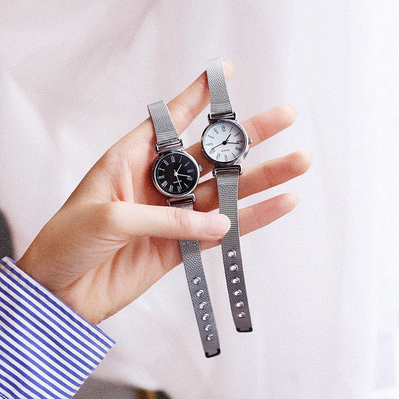 Jam Tangan Stainless Steel Gaya untuk Wanita Analog / Jam Tangan Stainless Steel Kecil Analog