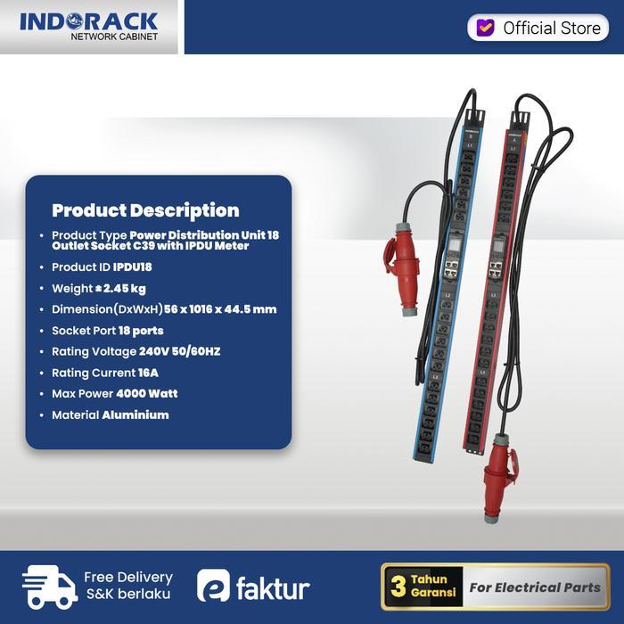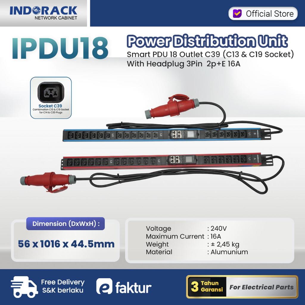 INDORACK Stop Kontak 18 Lubang IPDU 18 Power Distribution Unit 18 Outlet PDU 18 Outlet C39 ( C13 & C19 Socket ) With Headplug 3pin 2p+E 16A Colokan Listrik