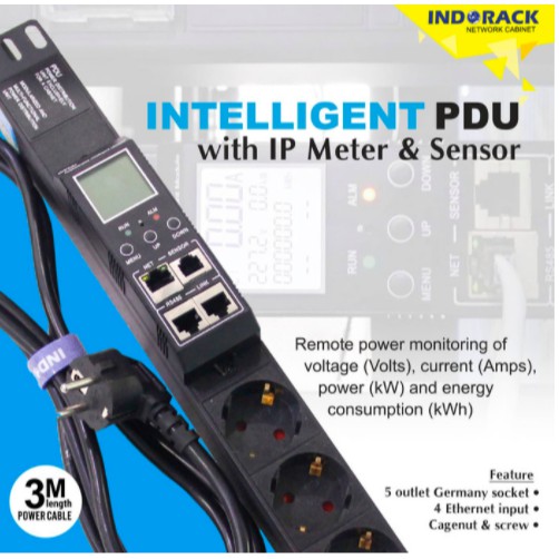 PDU5G-IP - PDU 5 Outlet Germany with IP Meter and Sensor - INDORACK