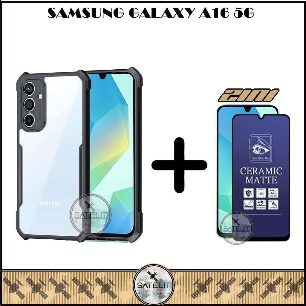 Promo Paket 2 IN 1 Case Transparan Samsung Galaxy A16 5G 4G Tempered Glass Esd Premium Full Layar