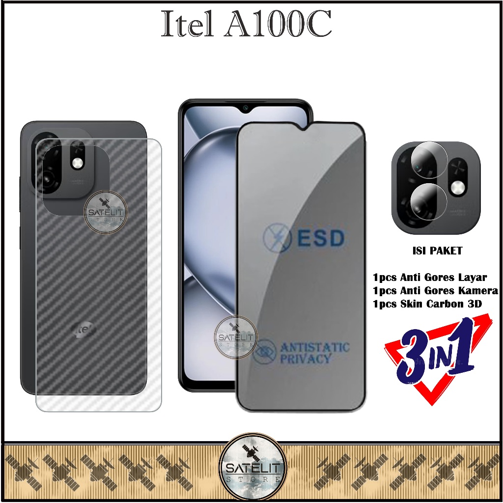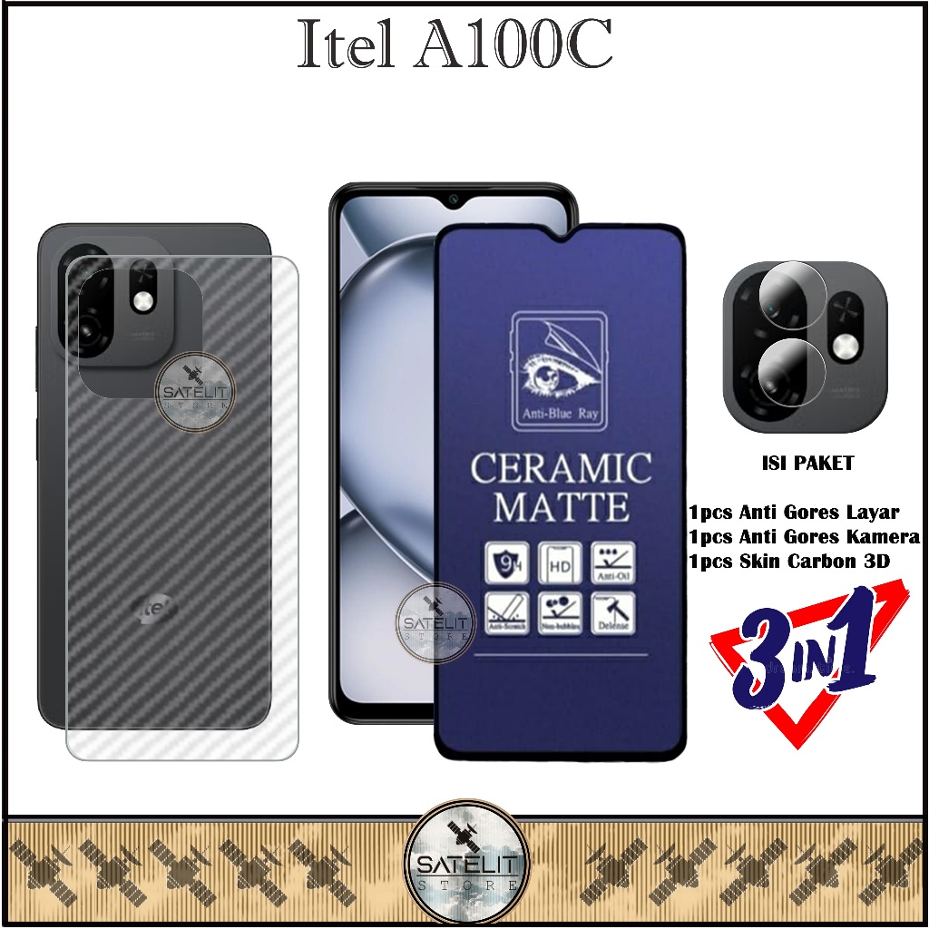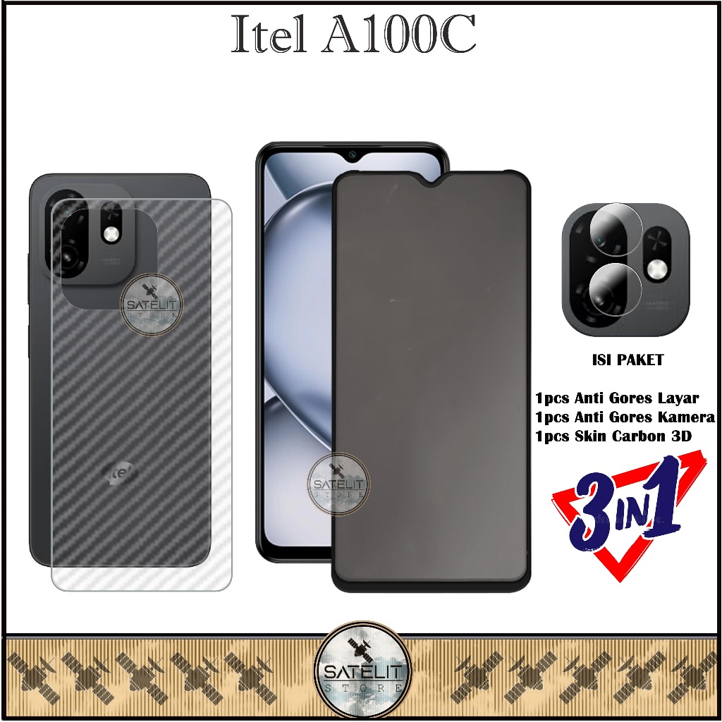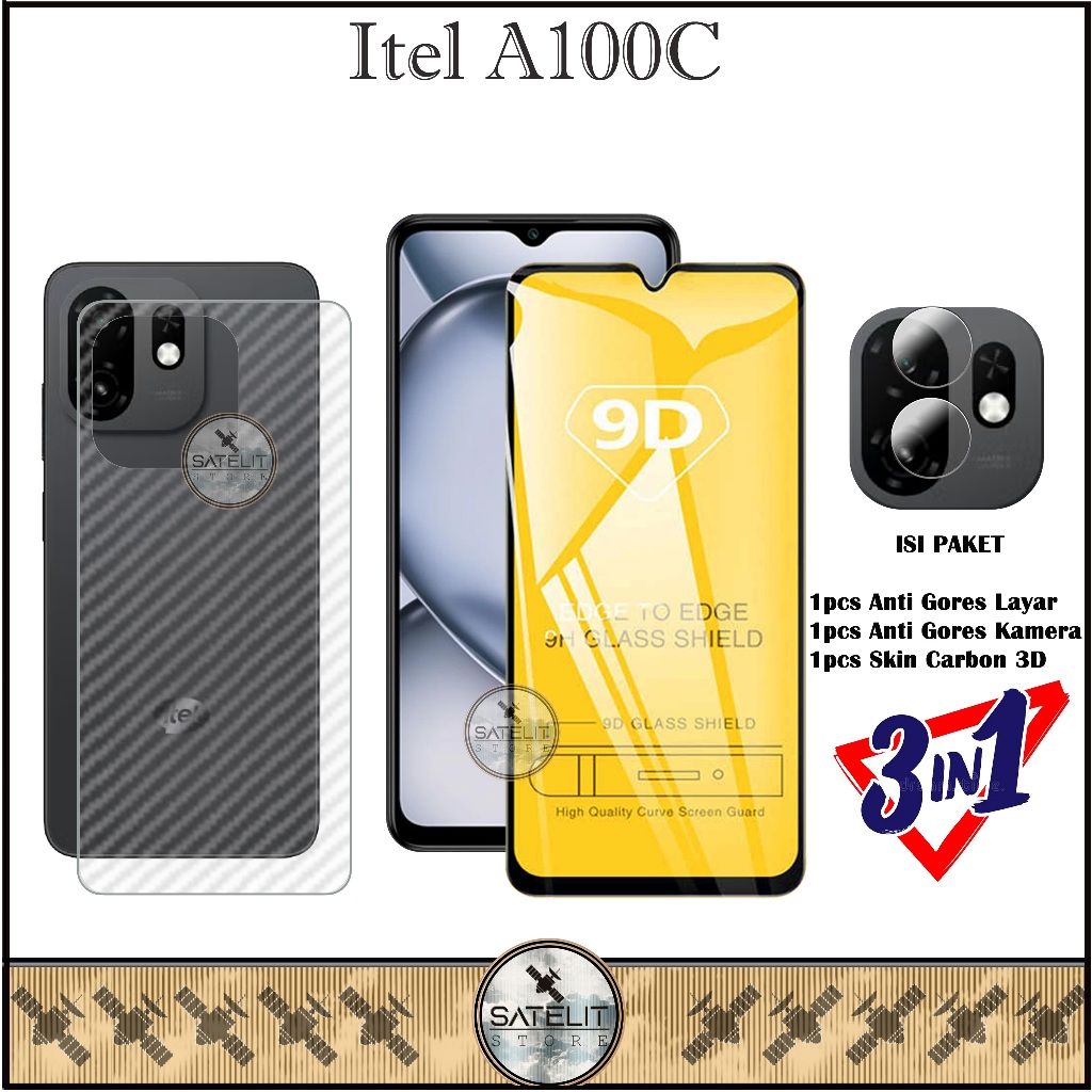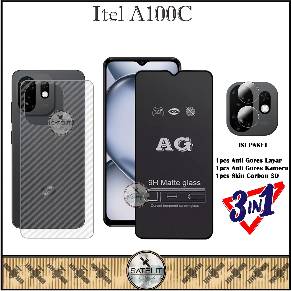 PAKET 3IN1 Tempered Glass Bening Itel A100C Full Cover