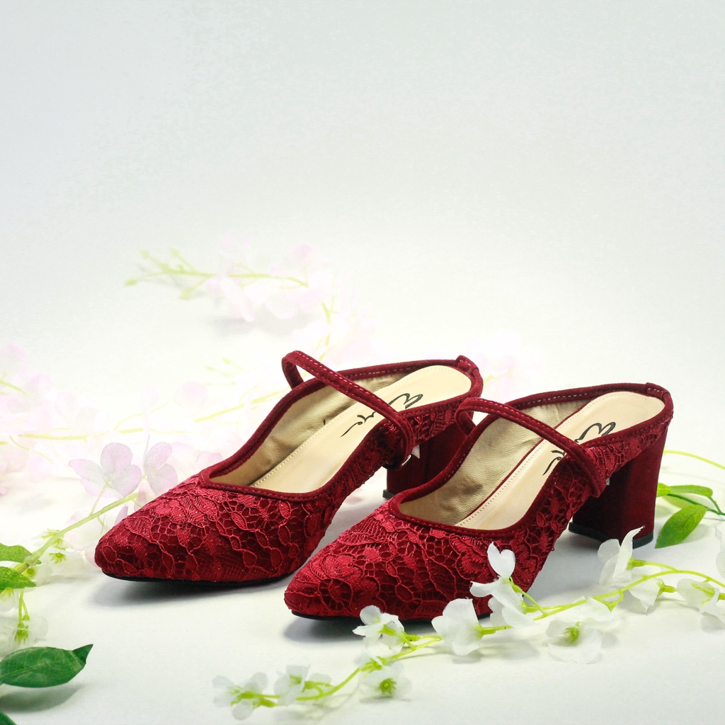EMYE - High Heels Wanita Sandal Pesta Brukat Hak Tahu 7cm EMO2 Hak 7 cm/sepatu pengantin murah