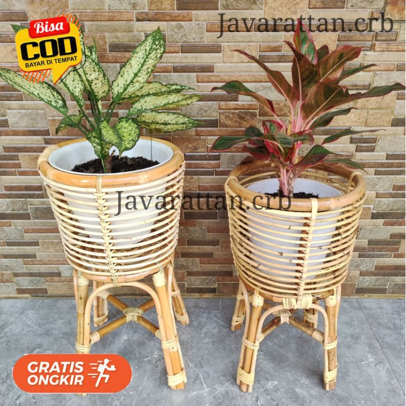 Standing Pot Rotan Natural Diameter 30cm / Pot bunga Aesthetic Ruang tamu