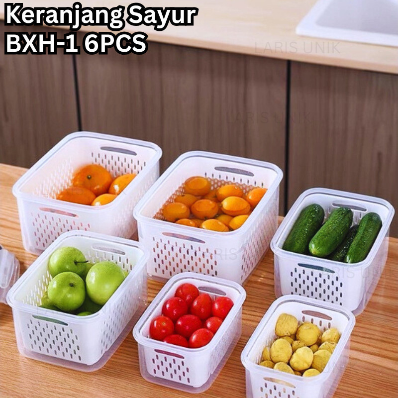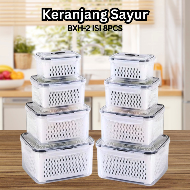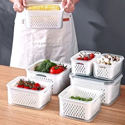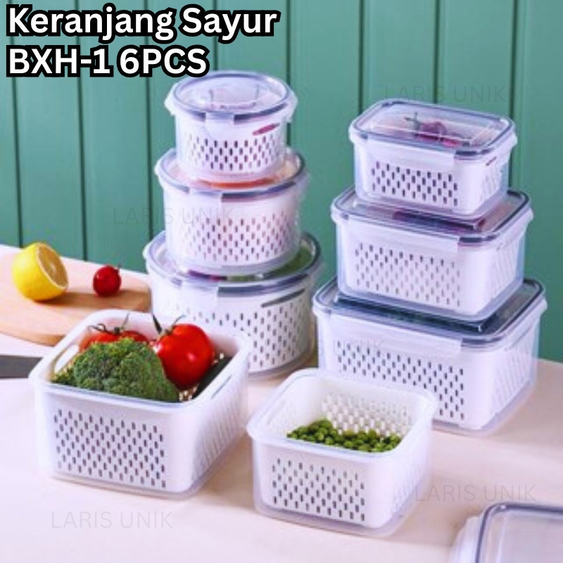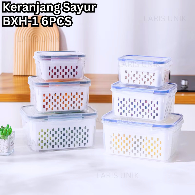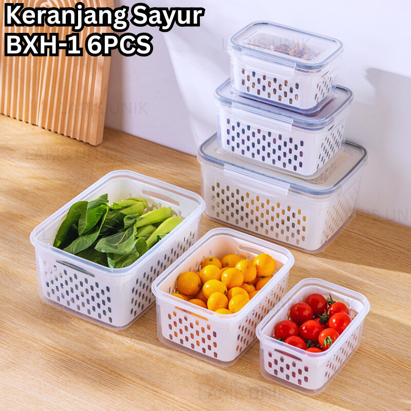 Kotak Penyimpanan Makanan dengan Saringan - Food Container Transparan - Fresh Box Kedap Udara 3 in 1
