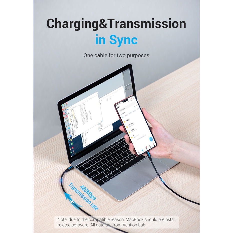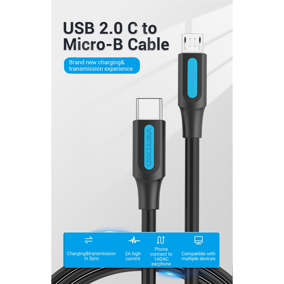 Vention Kabel Charger 2A Type-C to Micro USB Adapter USB-C to Micro-2M