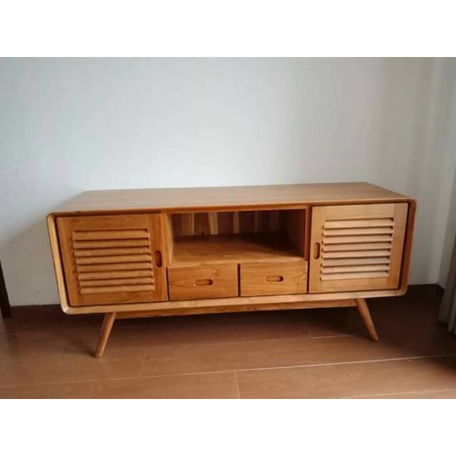 Meja tv minimalis retro jati perhutani