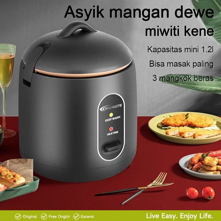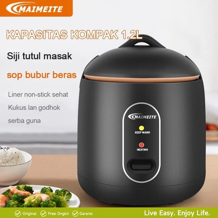 MAIMEITE Rice Cooker Mini/Magic Com Mini Multifungsi/Panci anti lengket penanak nasi 1,2LMagiccom Kecil Low Watt Steamer