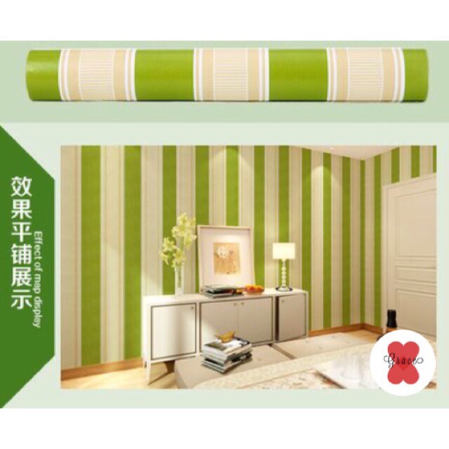 LnG 10 Meter - Wallpaper Salur Garis Hijau Elegan 10 Meter * 45 Cm