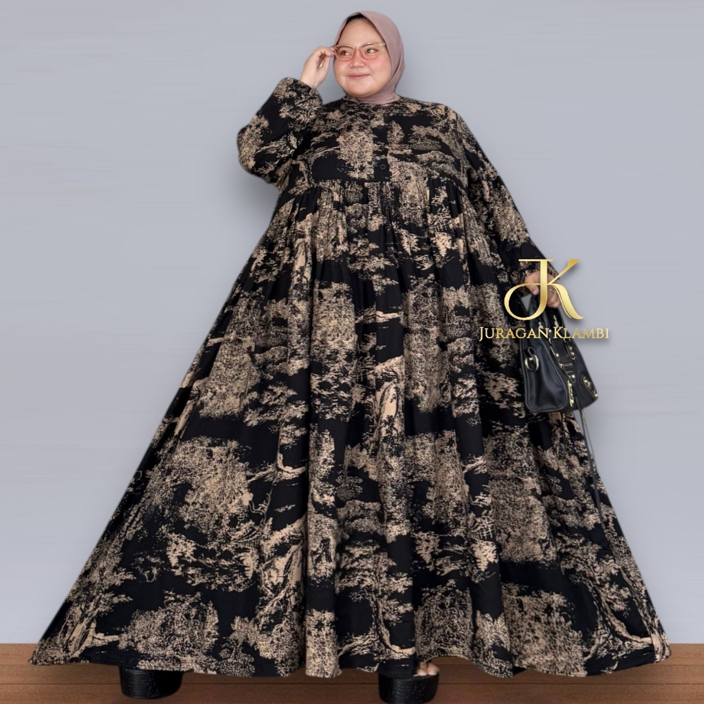 Midi Dress Jumbo Motif LD 130 140 150 BB 85-130kg Bahan Rayon Viscose Free Bros ByJuraganKlambiJumbo
