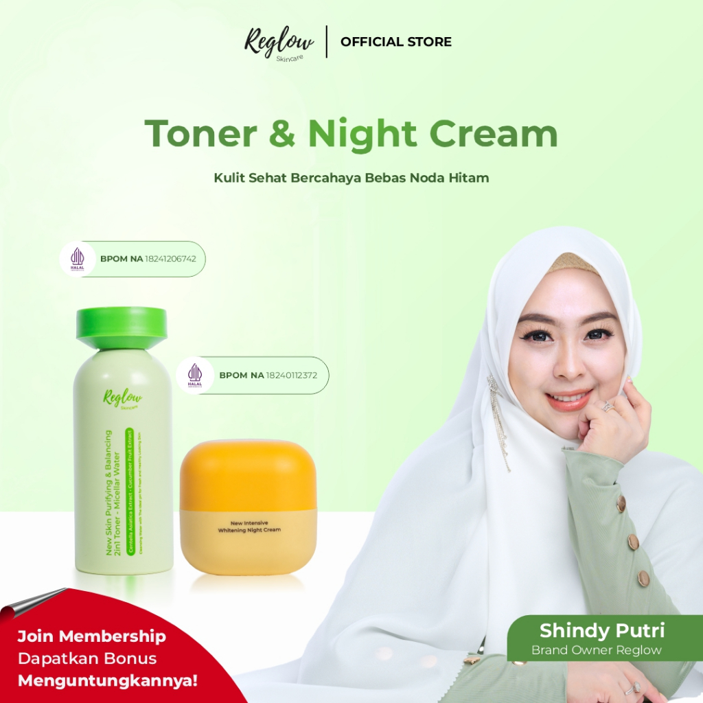 Reglow 2in1 Toner and Micellar Water & Reglow Intensive Whitening Night Cream - Membantu Menghidrasi dan Membantu Mencerahkan Kulit Wajah