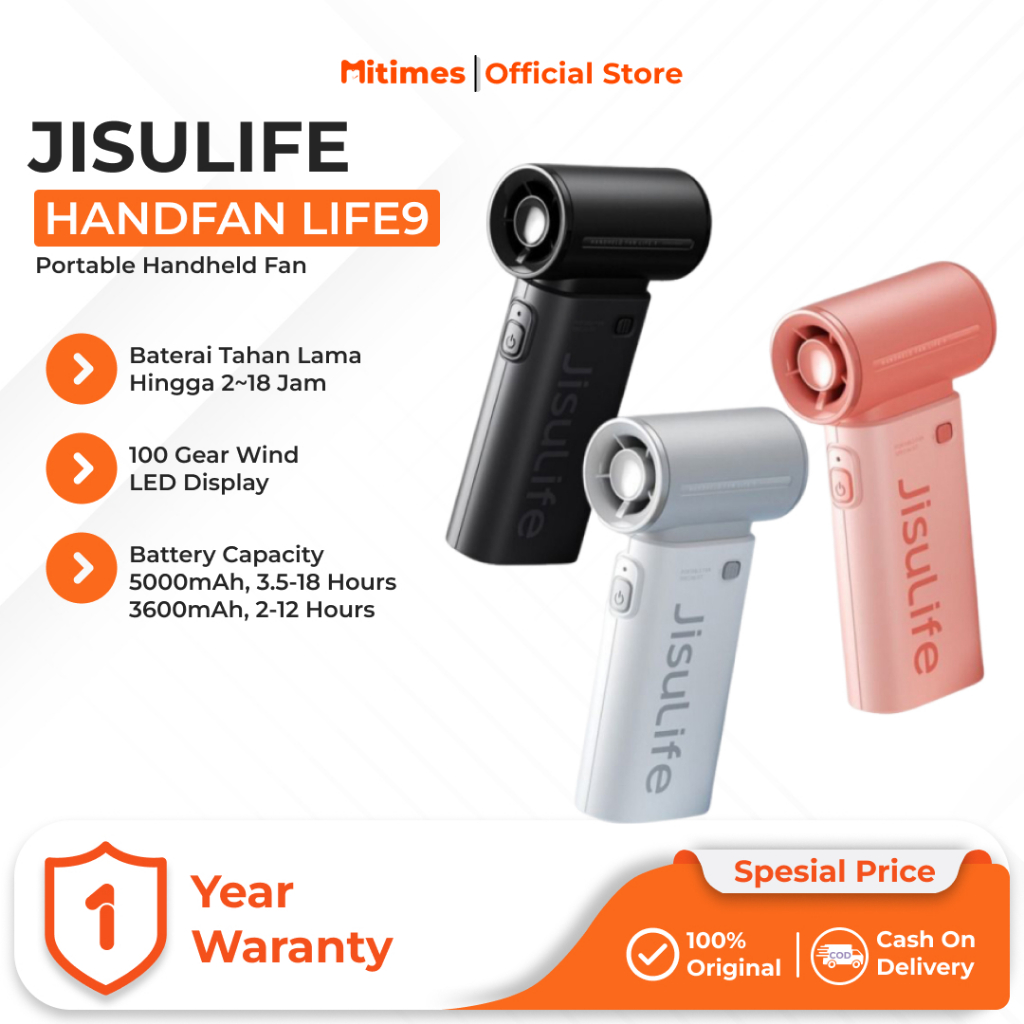 JisuLife Handheld Fan Life9 | Portable Handheld Fan | Kipas Angin Genggam | 5000mAh 3600mAh with 100 Gear Wind