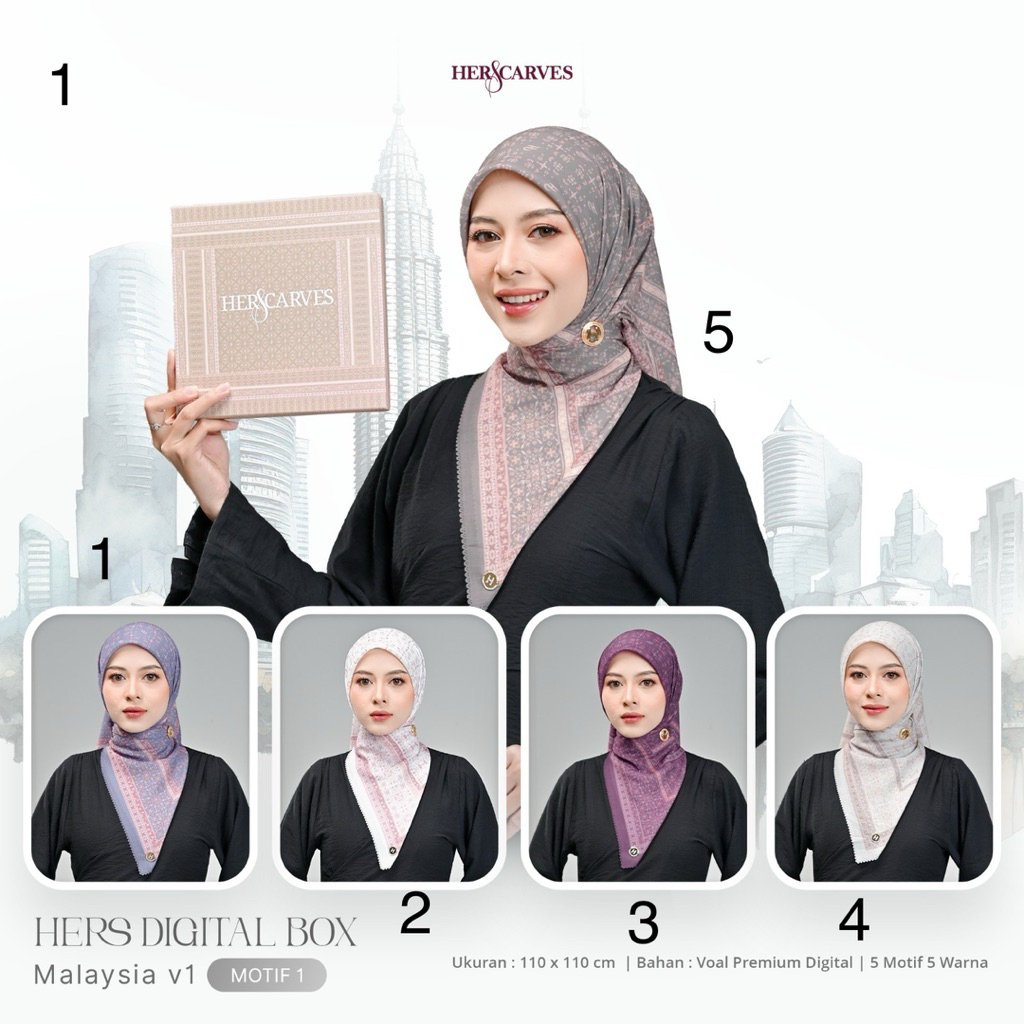 [Best Seller isi 5 Pieces] Hijab Hers HerScarves Motif Digital Print Premium Box