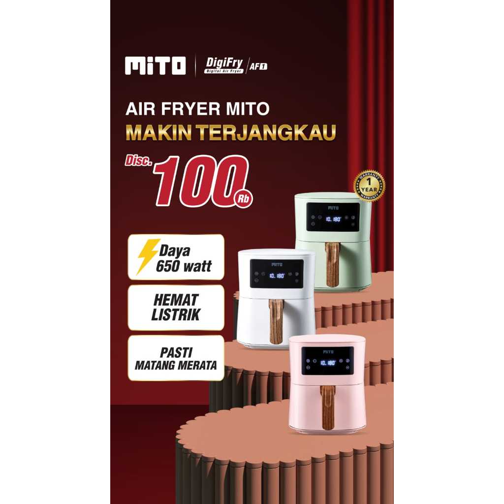 Air Fryer Mito AF1 Deep Fryer Digital 4 Liter Low Watt DigiFry AF-1