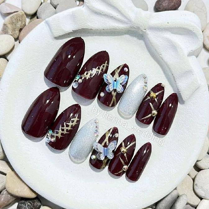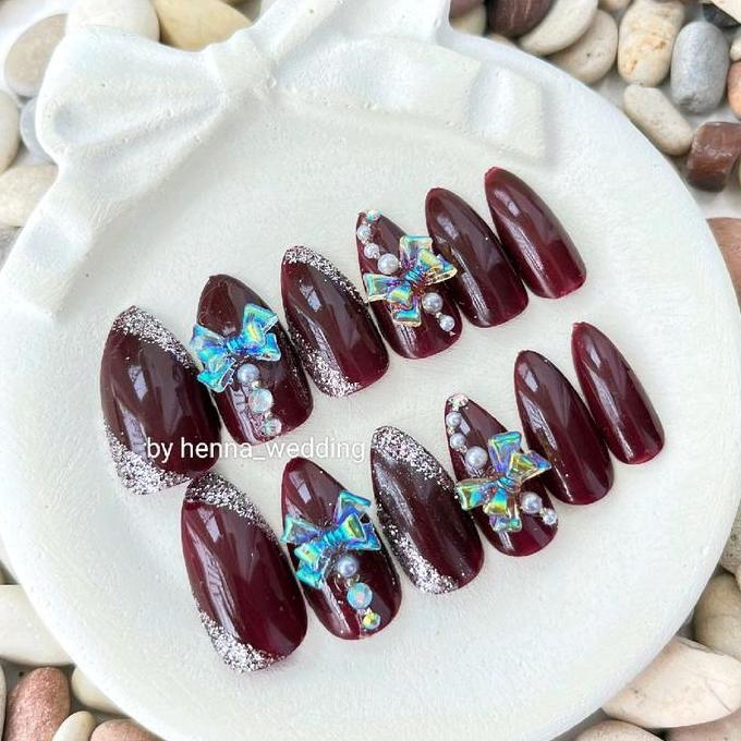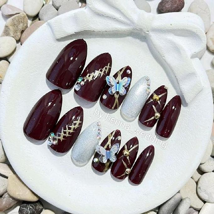 CATEYE KUKU PALSU HANDMADE 3D FREE LEM|KUKU PENGANTIN|FAKE NAILS ART NAIL POLISH CUTBRAY