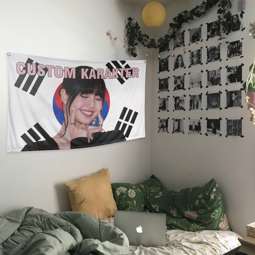 Nazhifa Printing - Poster Bendera Custom Korea Selatan Flag Karakter Favoritmu Kpop Idol