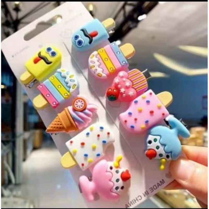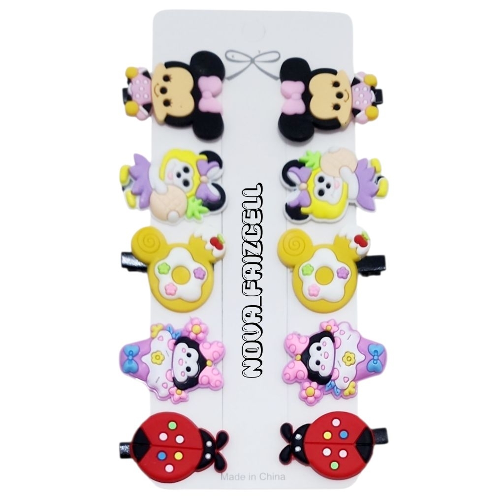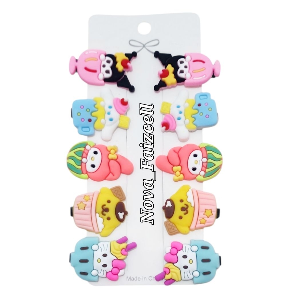 1 set ( isi 10pcs ) Jepit Rambut anak Ice Cream / Unicorn / Mix Fruit / labubu / Sanrio / Baby Cry / Capybara Jepitan Anak korea style.