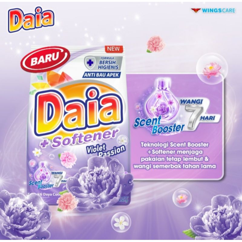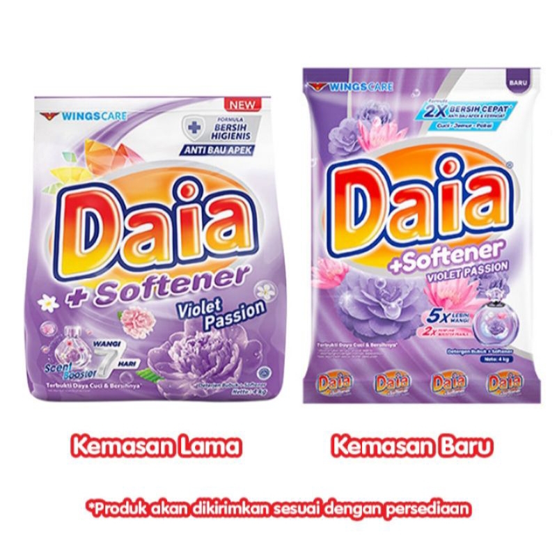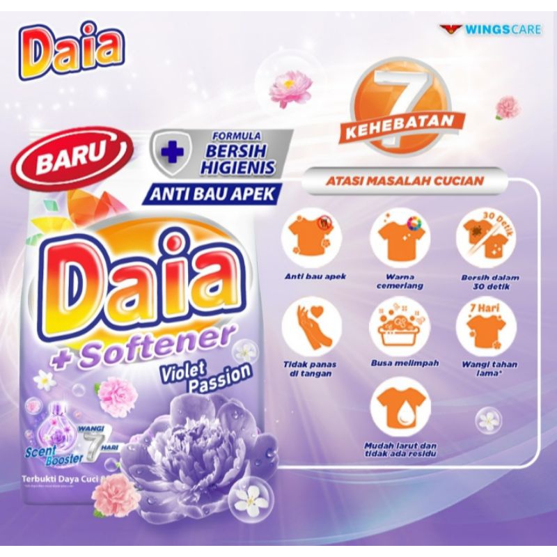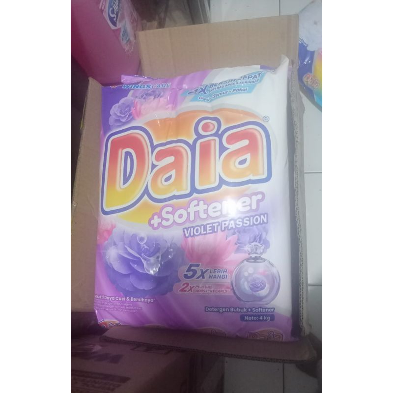 DAIA + SOFTENER DETERJEN BUBUK VIOLET PASSION / FLORAL / PUTIH 4KG ORIGINAL PRODUK WINGS CARE