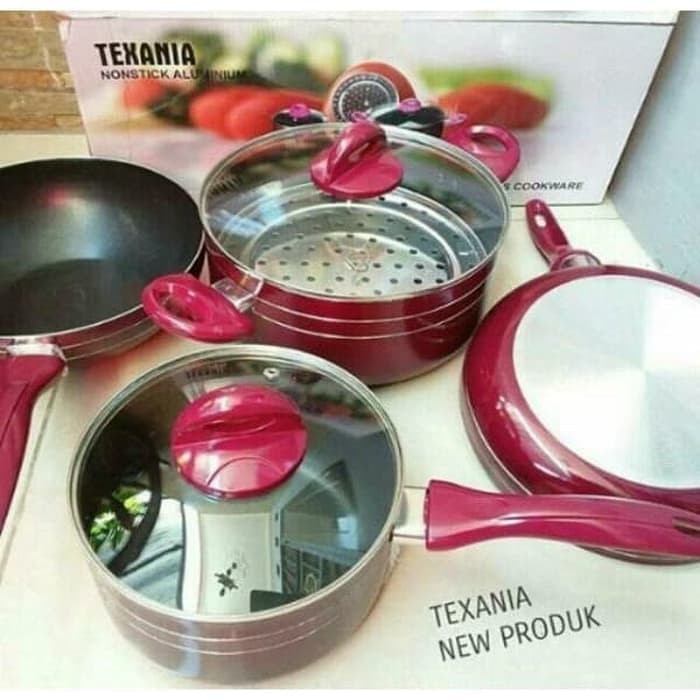 Panci Set / Cookware set-7 / Teflon set-7 TEXANIA - Merah Muda