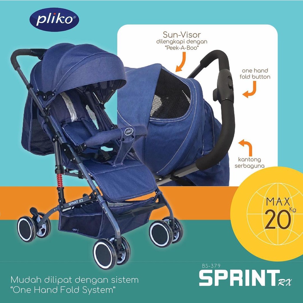 Stroller Kereta Bayi Pliko Sprint RX BS 379 / Sprint RH BS 389 Ringan Mudah Dilipat One Hand Folding System