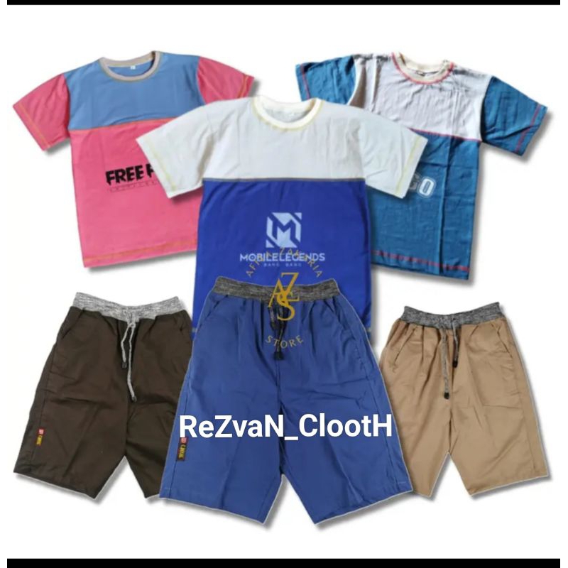SETELAN ANAK 100 RIBU DAPAT 5 SETEL USIA 2-14 TAHUN BAHAN KATUN ( 5 kaos dan 5 celana )