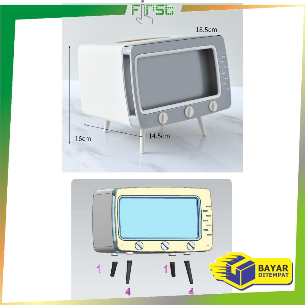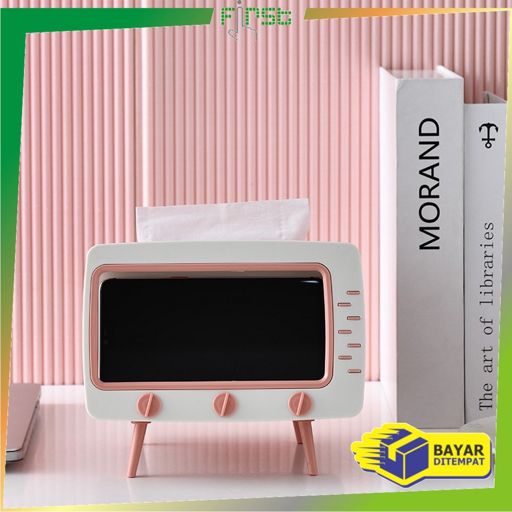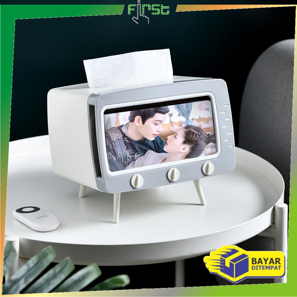 *COD*FH-C105 Kotak Tissue Box Organizer Bentuk TV Tempat Tisu + Stand Phone Holder Home Office Décor