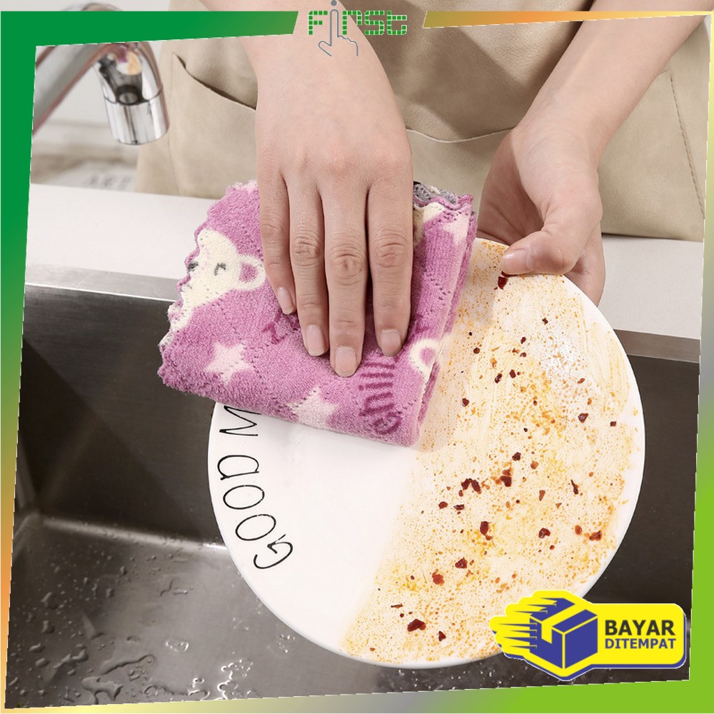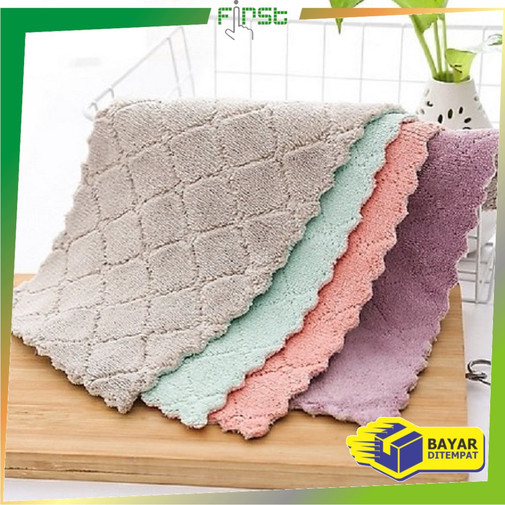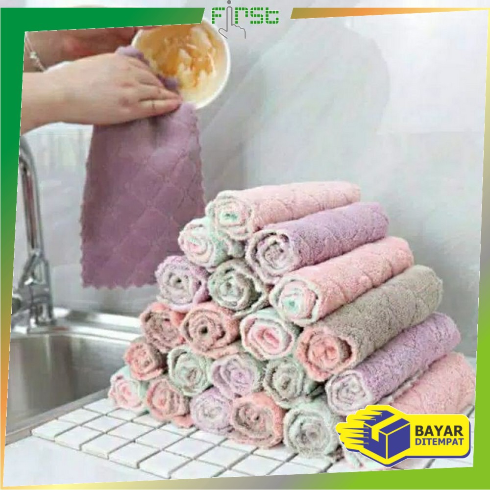 *COD* FH-C225 Kain Lap Piring Anti Minyak Bahan Coral Fleece / Kain Lap Dapur Microfiber Serap Air