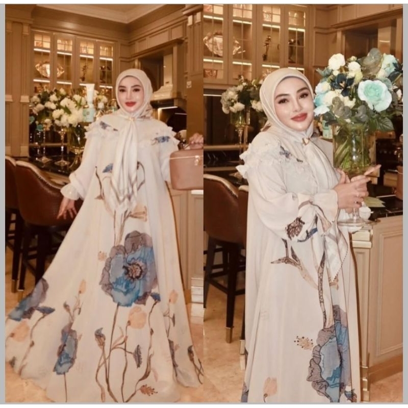 SHELLASAUKIA GAMIS SET HIJAB FLOWER CREAM